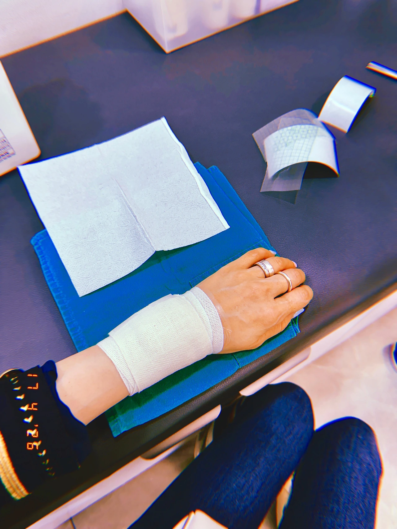 드레싱 완료. 물집을 (accident 였지만) 터뜨리믄 안 되는 거였다고. 병원에서 나오니 꽃집에서 <어버이날 꽃> 예약받는다. #friday