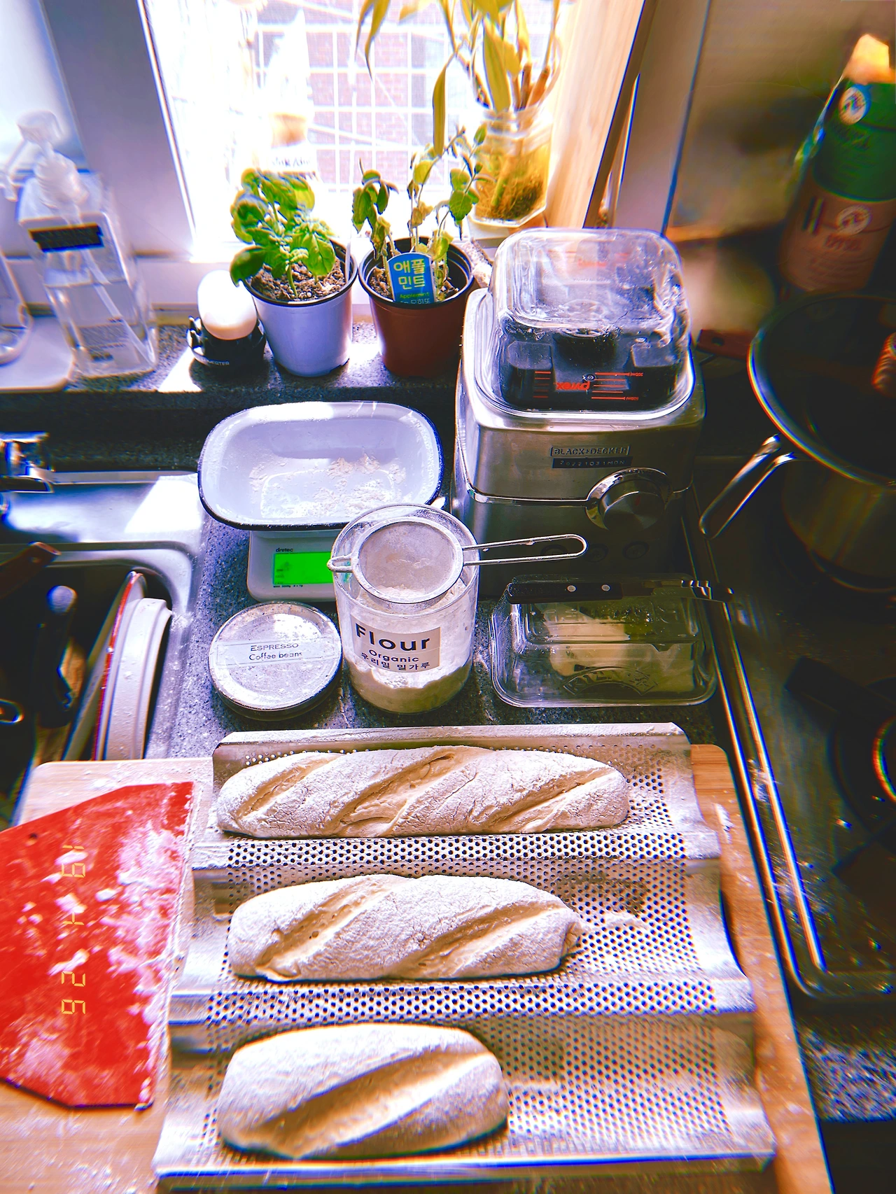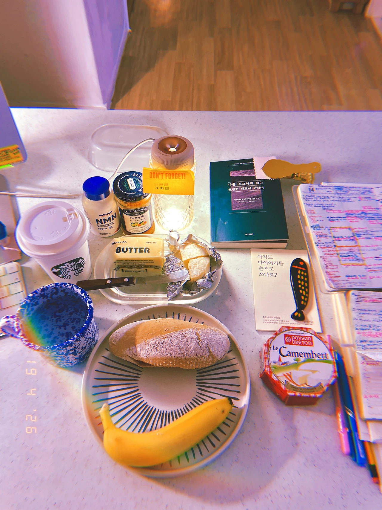 영국 사람이 런치 고기 사러 갔다 와 <Soya Latte|쏘야 라테> 던져줌. 뜨건 바겟에 치즈 버터 무화과 잼 바나나 먹는데°ロ° 닭다리살만 900g 구워서 (빵에 안다르가겠지`v´) 바겟 따로 상추탑 따로 쌓은 영국 사람 런치에 새삼 감탄했다-o- 청소년에겐 미니 바겟 샌위치.`0´ #☀️27 #April19 Sn19Apr2026 #sunday