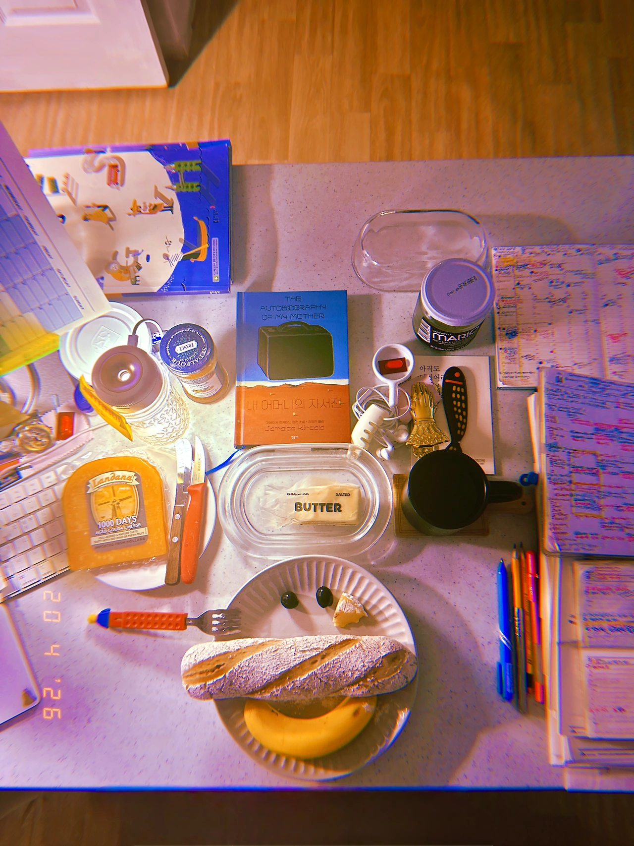‘바겟은 거들뿐’ 현장. 빵 거의 안 보이게 치즈. 버터. 바나나. 올리브 올려서 12-20번 흡입하는 루틴 중 last piece. #Cloudy14 #M20Apr2026 #monday