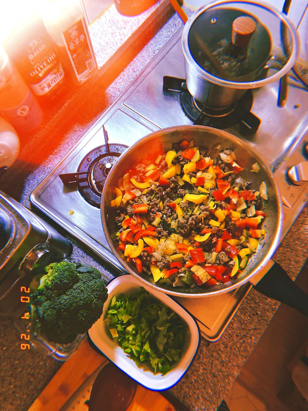오늘은 청소년이 하교 직 후 경기 뛰는 일정.(눈 부상으로 못 감ㅜ) 영국 사람 샌위치 못 먹은 관계로 남은 바겟 처리 위해? 아니, 영국 사람이 좋아해서`v´ (또) Ragù <*큐민+샐러리+양파+Bell pepper> 매우 이국적 조합에 <토마토 퓨레+바질+오레가노+파마쟌 치즈> 마무리 #Rainy8 #April20 #Monday
