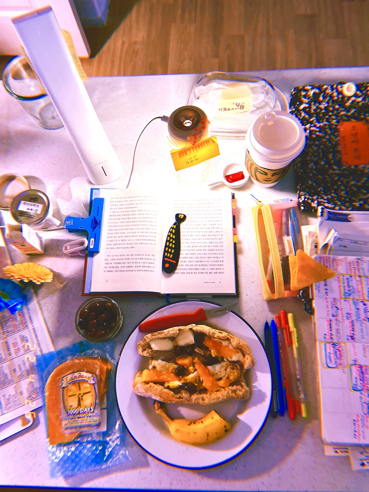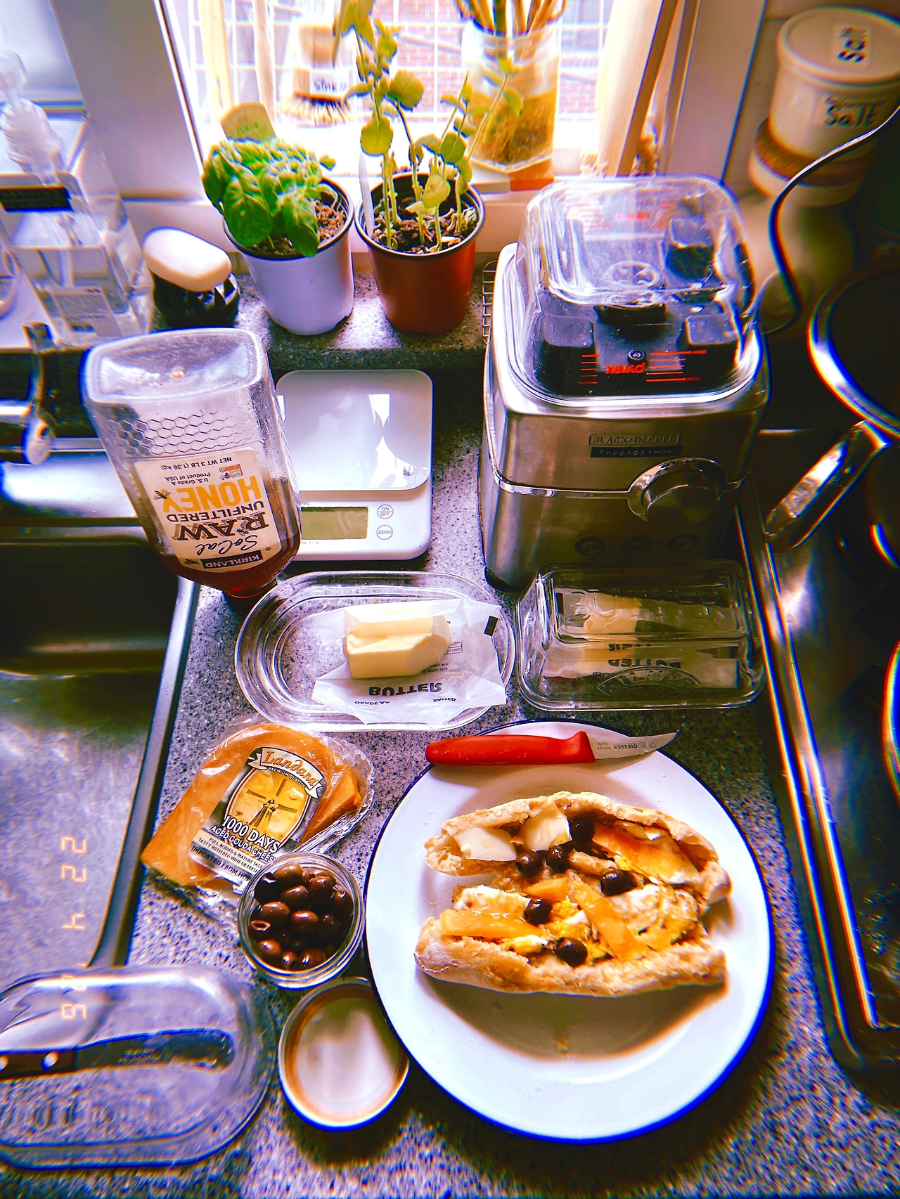 오늘은 #4pm 간식 아니고 #2.50간식.`v´ 아침에 half 남긴 버터. 치즈. 계란. 올리브. 꿀에 영국 사람이 눌러서 내려준 더블 에스프레소.☕️ #Wednesday