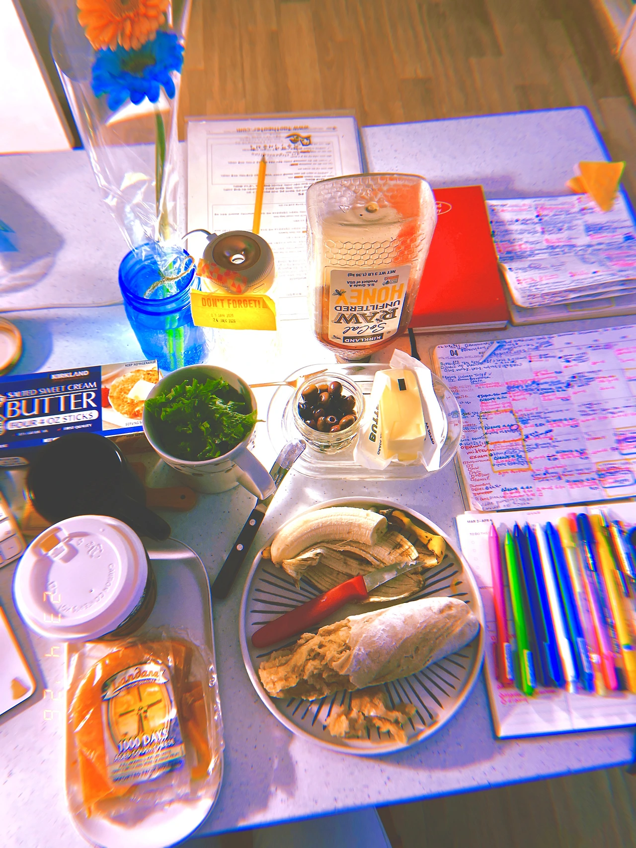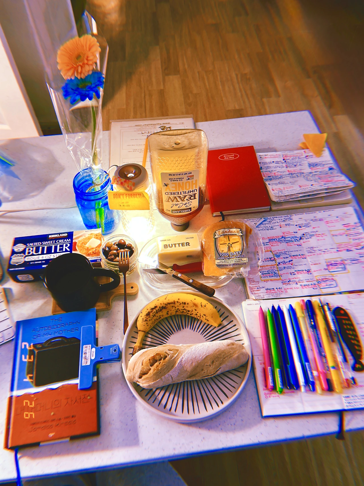 청소년 아침 기내식 <간장 버러 계란밥> vs. Mine <차가운 버터+1000일 숙성 고다치즈+바나나+올리브+꿀>과 영국 사람이 눌러준 <더블 에스프레소>☕ ️ #April23 #Thursday
