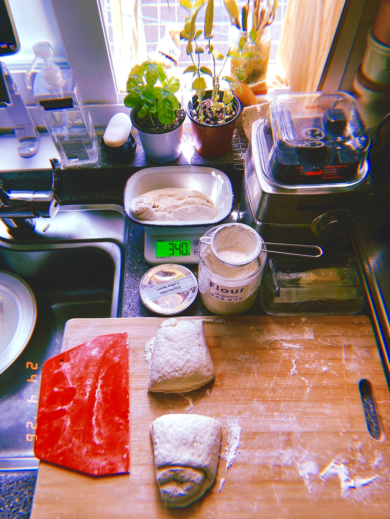 바질 화분에서 큰 잎사귀 2장 똑 따서 올리니 입에서 코까지 바질 향이 진동하는구나. 영국 사람이 눌러준 <더블 에스프레소> 마시며 모닝 베이킹. 요즘 <프랑스 정통 바겟> 초심이 멀어지는 거 같아 다시 레시피 정리했고 Starting my sourdough again this evening.
