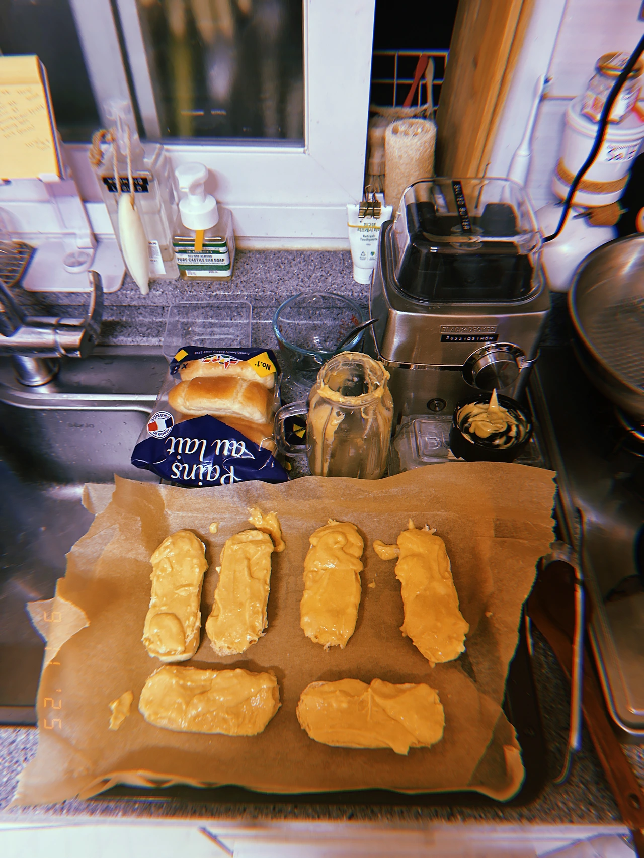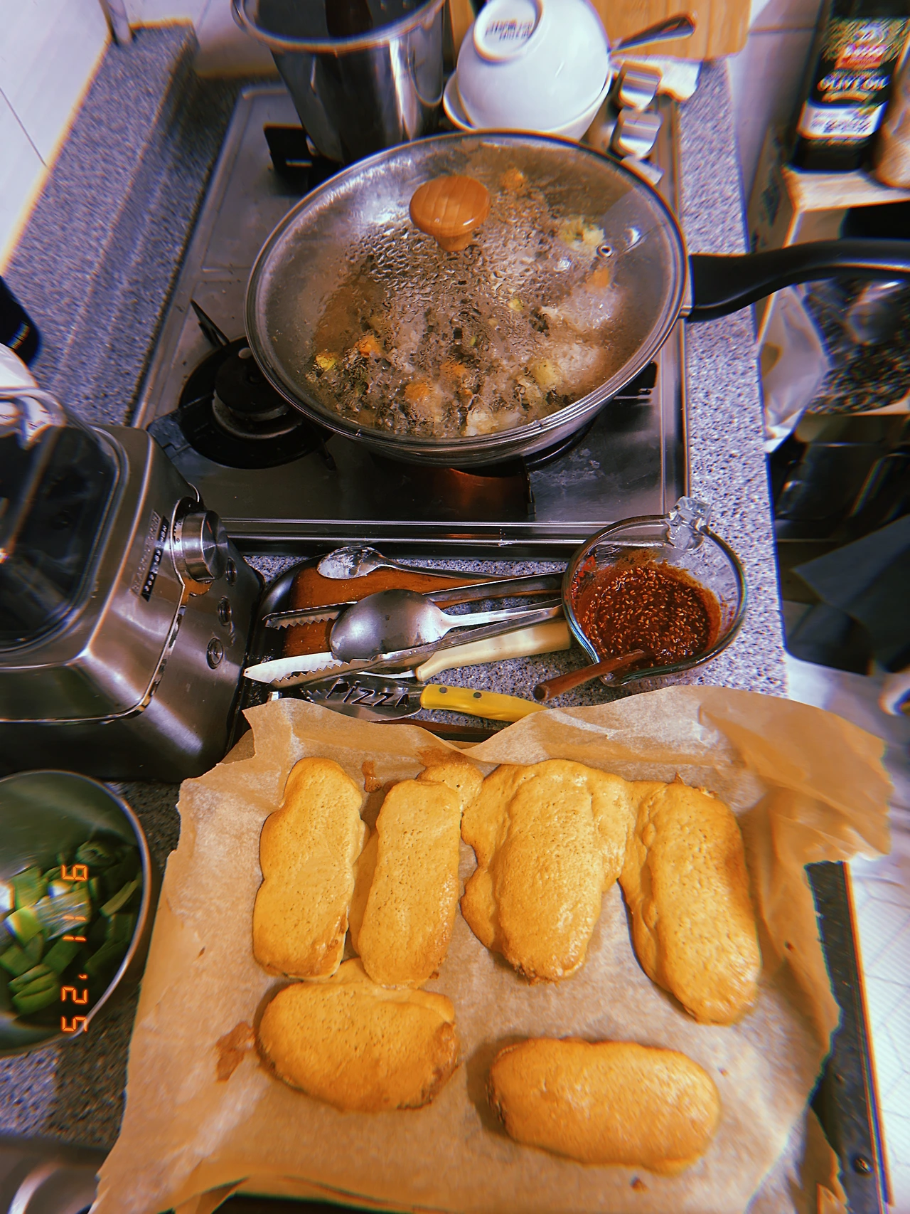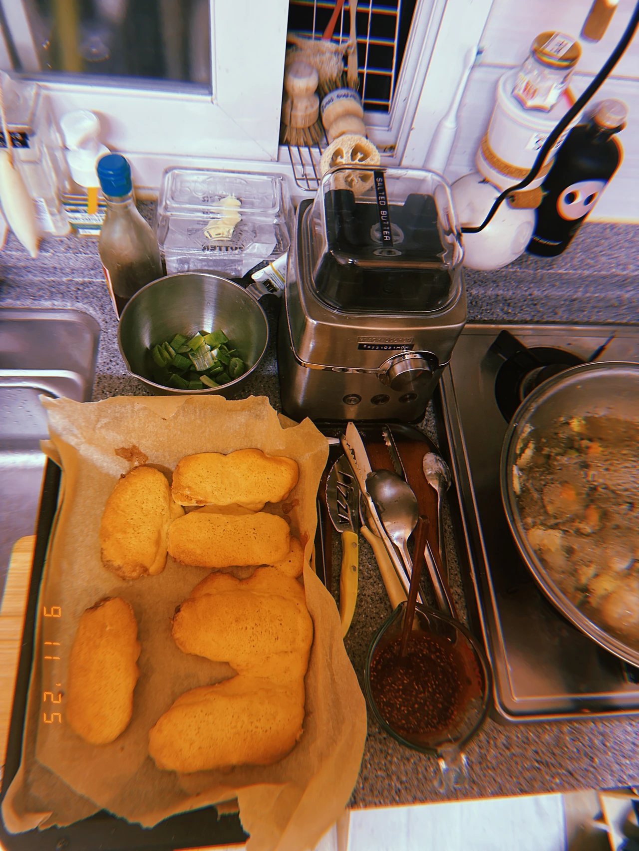 오늘 아침에 구운 <도넛 모양 마들렌> 솩샘과 보이들에게 인기 좋았음에 힘입어 <소보로 80: 빵20> 굽+저녁 요리 <제육> 해서 축구 두 탕 뛰고 온 보이들과 dinner. 고추장 딱! 1.5T 넣었는데 셋 다 매워서 힘겹..닭안심으로 <칩> 구운 건, 푱푱바삭 하지 않아 실패 #Huji #Sn9Nov2025