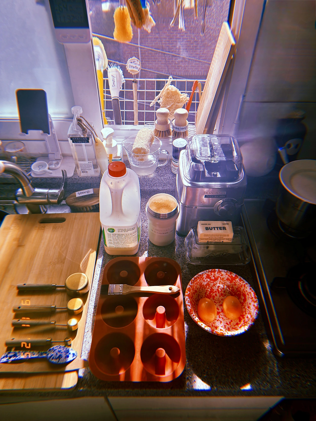엊저녁 축구 훈련+경기 두 탕 뛰고 밤에 들어온 율이 <찐 고구마> 먹는 모습 보고 아침에 눈 뜨자마자 고구마 찌면서 #모닝베이킹 <도넛 모양 마들렌> 브레쩰+라우겐 잘 만들고 싶다. #Sunny16 #Sn9Nov2025