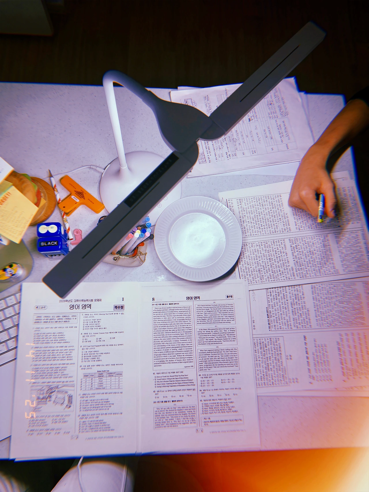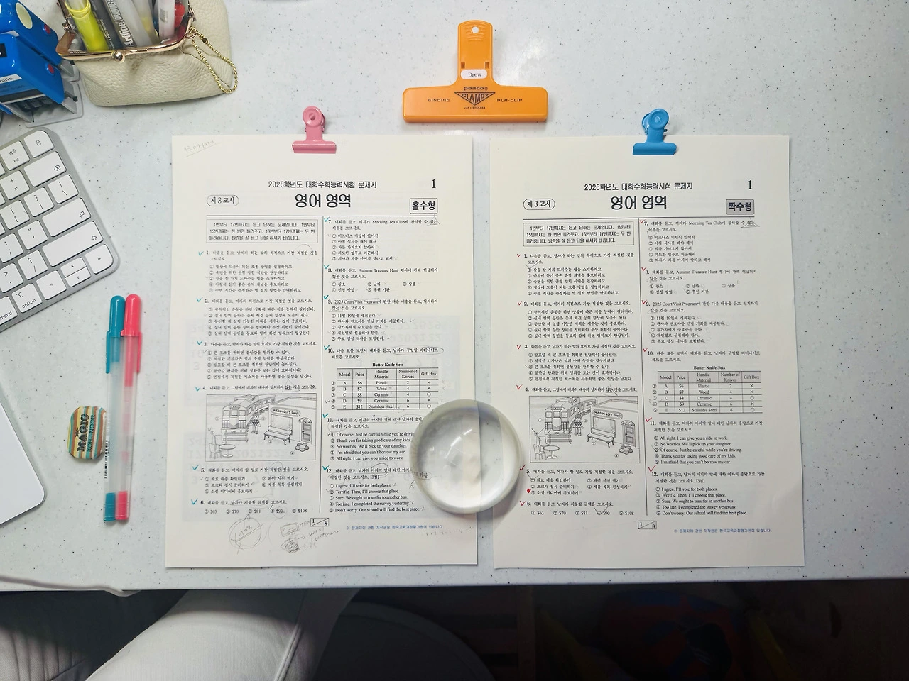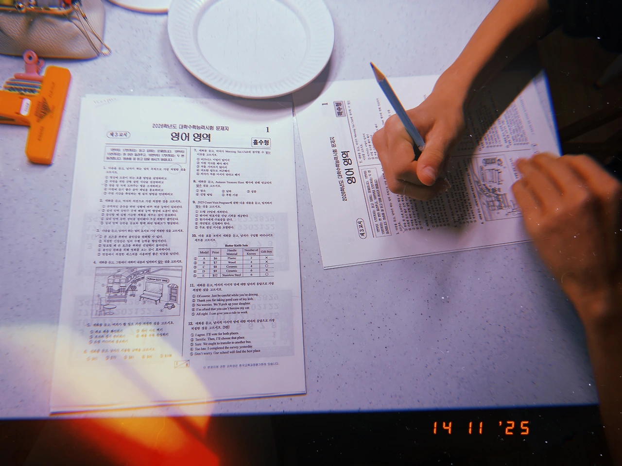 <2026 수능 영어> 문제 풀면서 율은 분명 학교 시험 공부 하고 있었는데, 어느새 <듣기 평가> 난 <홀수형>, 율 어린이는 <짝수형> 진지하게 듣고 풂. #듣기평가만점 이 어린이 바로 수능 보게 해도 될 거 같다. 낼 잭이랑 장보기로 해서 종이에 적고. (폰 말고 종이 선호하시는 영국인) #11.45pm