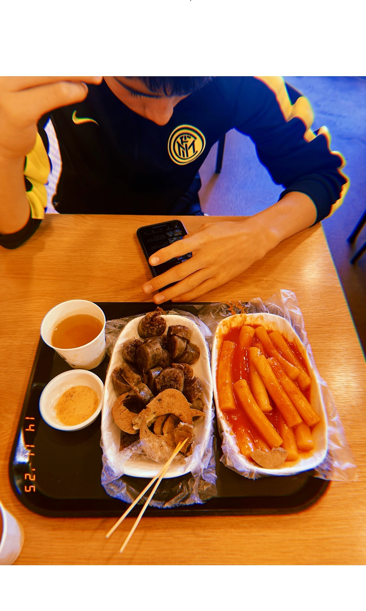 마치 등교하는 것처럼 어제(수능일)+오늘 학교 임시 휴무로 등교 안 한 율과 이른 아침 먹고 지하철 여행 #9AM 어젯밤 삼겹살 집에서 모쫄함이 아직도 소화 안된 ‘긔’ 에스프레소 1.5샷으로 누르면서. #Sunny5 #F14Nov2025
