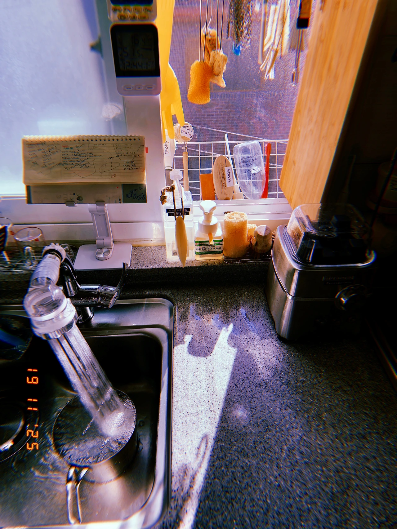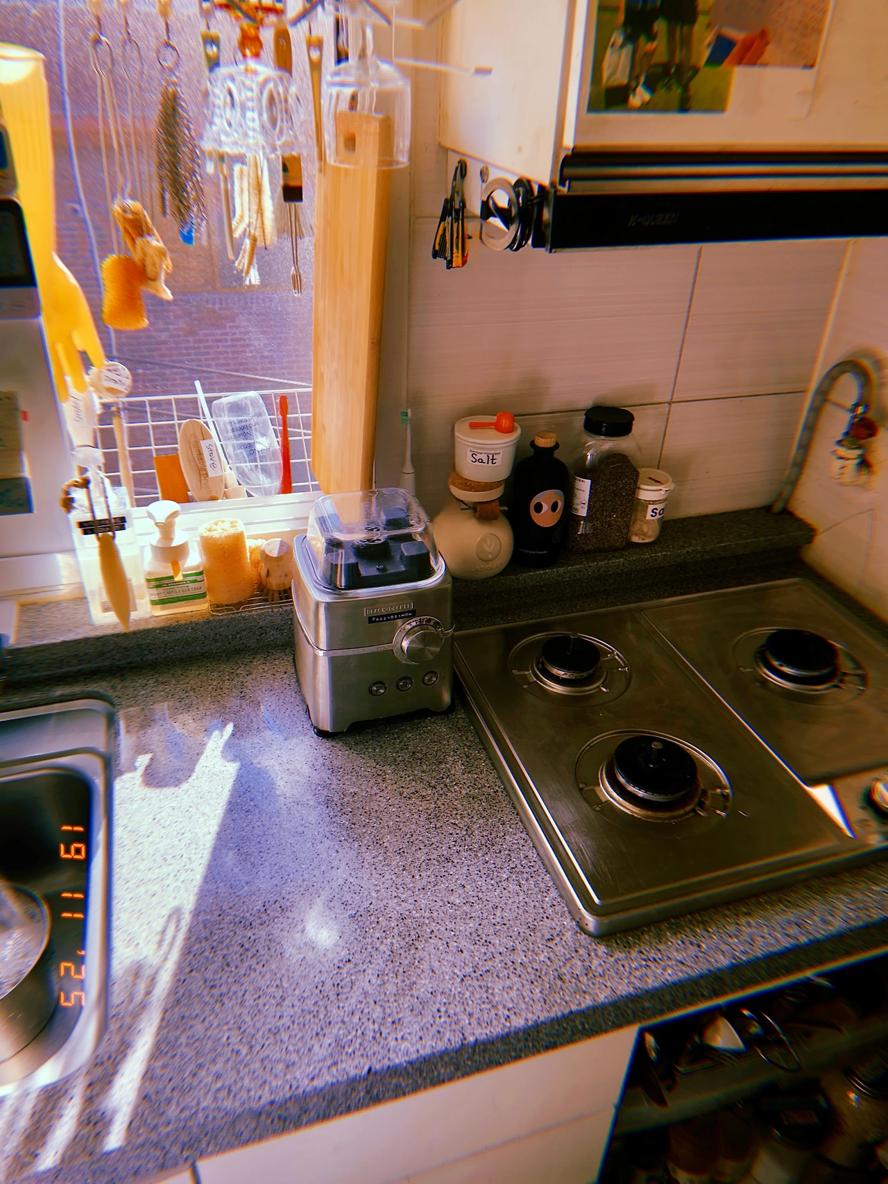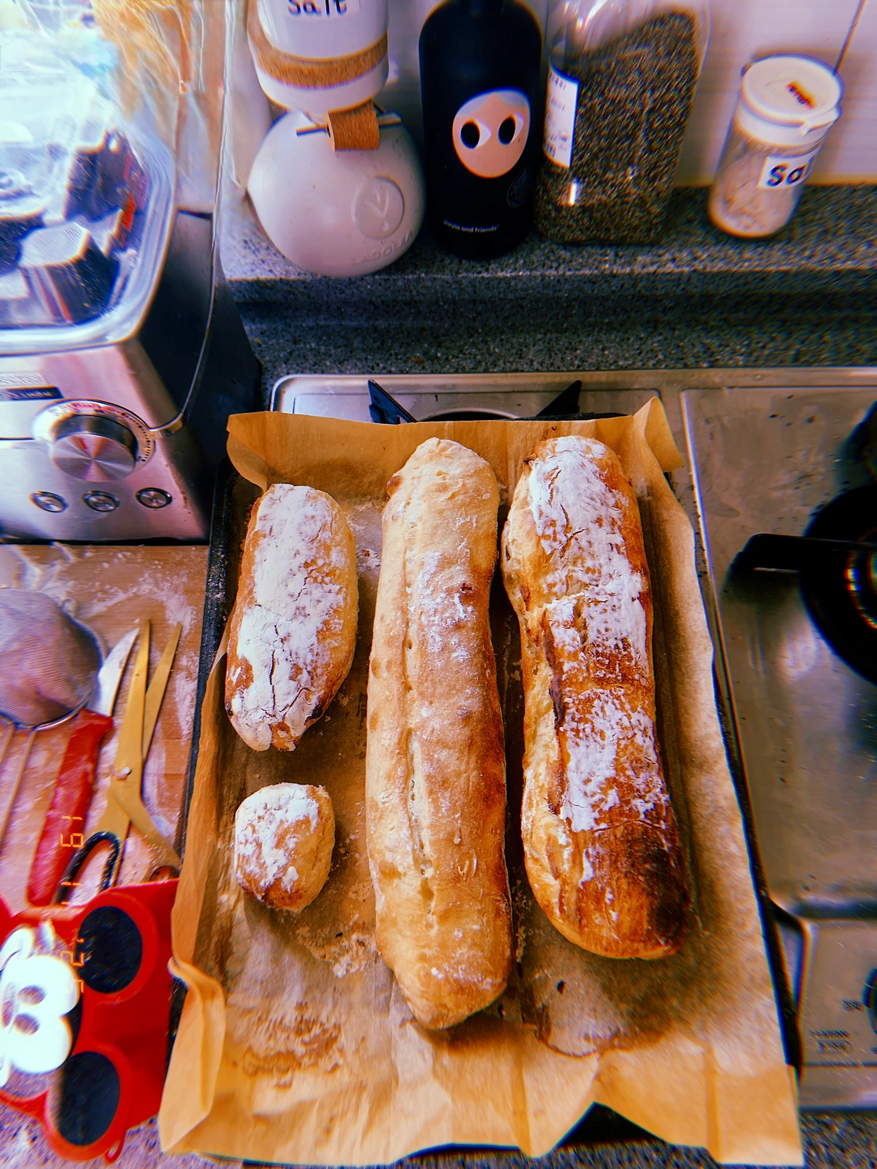Beautiful 발효. 초토화된 키친. 심혈을 기울인 <바게트 틀 역할 종이>에 국 데우다 불붙어서@@! (차마 사진은 못 찍었다=기록과 글에 목숨거는 트위타리안 정신 부족했다.) 겁났지만 얼른 끄고 다시 만듦.--' 오븐에 반죽 넣고 <고기 뭇국에 누룽지 끓여서+김치> 먹으며 기다리는 중(요가하는 상상중...) #sunny-1 #W19Nov2025