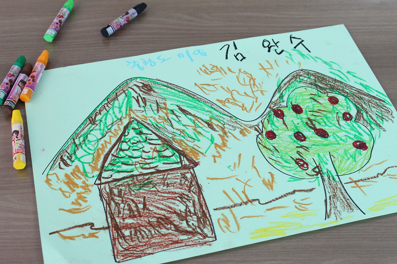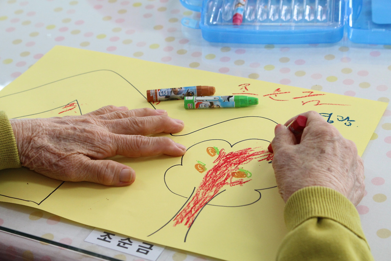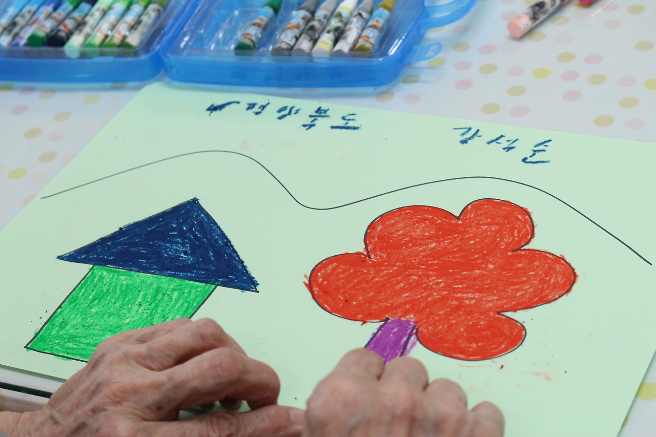 그리고 또 하나의 기억. 노인주간보호센터에서 어르신들과 함께했던 시간. 그분들은 마치 어린아이처럼, 조심스럽게 기억을 꺼내어 고향의 풍경을 그리셨다. 어떤 분은 그림 한편에 또박또박 고향의 주소를 적어 넣으셨다. 누구는 뺨에 눈물을 흘리셨고, 누구는 멜로디를 흥얼거리기 시작했다.