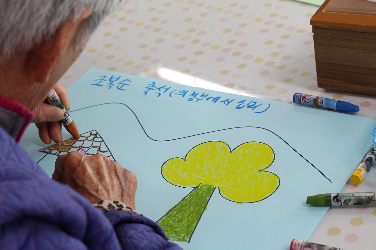 그리움으로 그린 고향의 풍경 – 노인주간보호센터에서(2018)