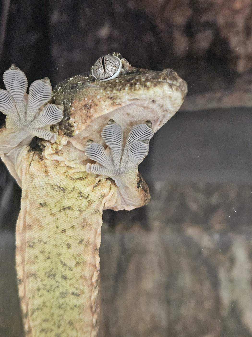 그날도 평소처럼 매장을 거닐다가, 한 케이지 안에서 느릿하게 몸을 움직이는 작은 생명체와 눈이 마주쳤다. 가느다란 다리, 유리알 같은 눈, 벽을 타고 오르는 부드러운 발. 그 작은 생명은 조용히 나를 바라보고 있었다. 아들은 유리 너머의 게코를 보며 환하게 웃었다.