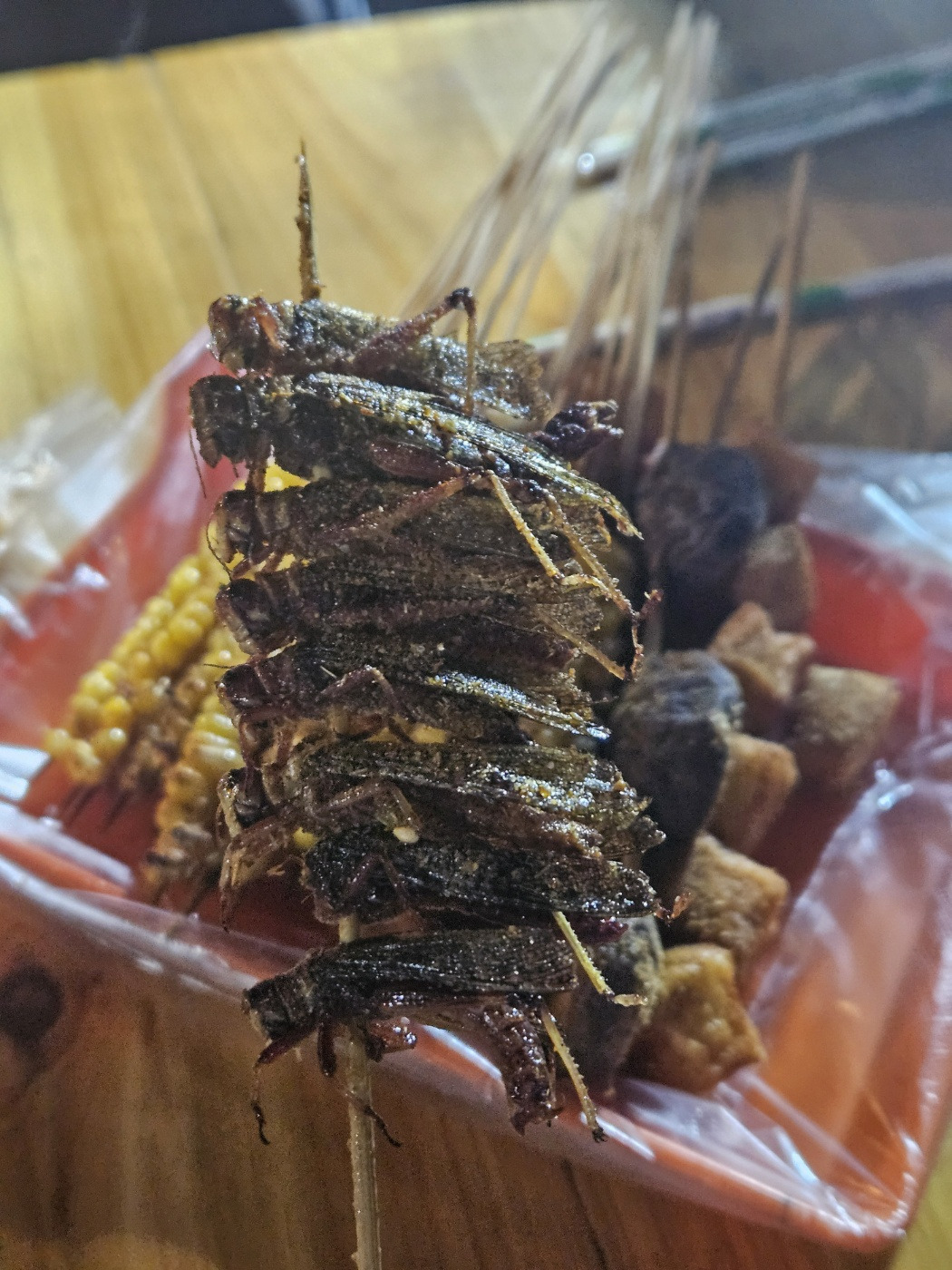 중국 야시장에서 만난 이색 맛, 메뚜기 꼬치구이