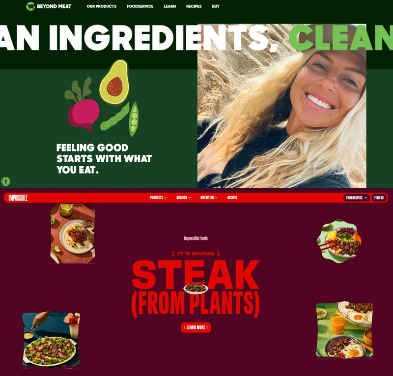 비욘드미트와 임파서블푸드 홈페이지 갈무리