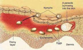 사람 피부 중 각질층에 굴을 파고 들어가서 기생하며, 심한 가려움과 염증반응을 유발하는 것이 특징이다.