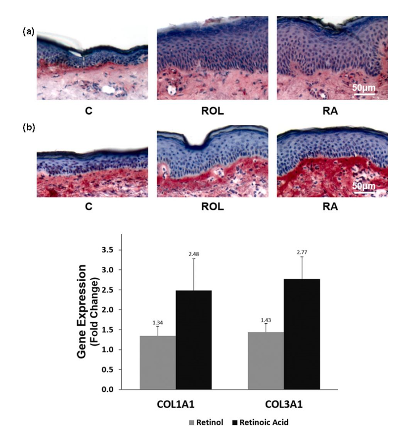 최근 연구로 레티노산과 레티놀의 효과를 직접적으로 비교한 논문이 있어서 흥미롭게 읽었습니다.