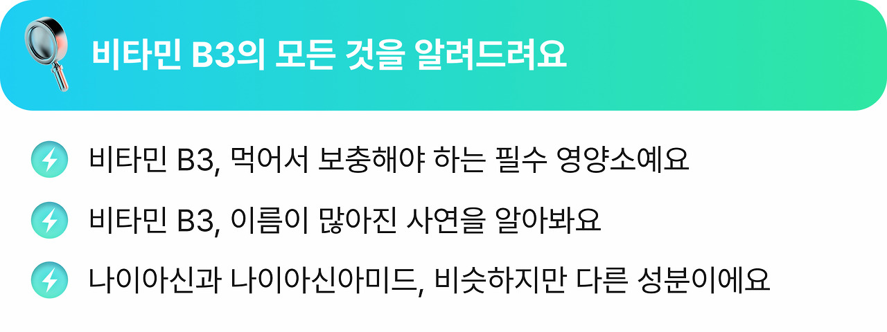 오늘은 건전지가 좀 더 자세하게 비타민 B3의 모든 것을 알려드릴게요!