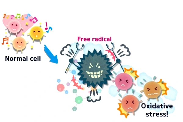 이때 ‘프리래디컬(Free Radical)’이라는 물질이 많이 생성되는데, 그에 따라 세포를 공격하는 활성산소의 체내 농도가 높아집니다. 이 과정에서 산화 스트레스(oxidative stress)가 발생하면 심혈관계질환 같은 만성질환이나 암이 생길 가능성이 커진답니다.