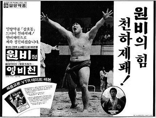 [4]”원비의힘 천하제패” 1990년 3월 13일 석간 12면 지면광고 발췌, 출처 동아디지털아카이브