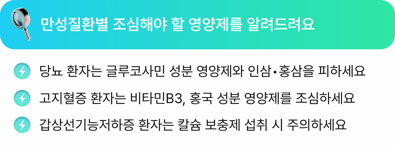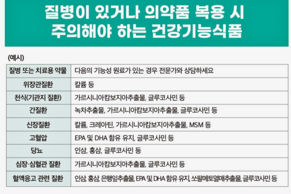 각 질환별 상호작용 조심해야 할 건강기능식품 총정리