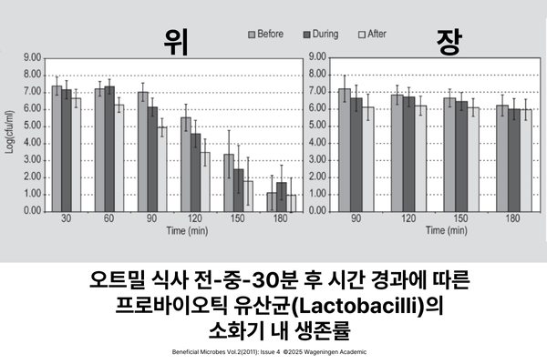 한편 한 연구 결과에 의하면, 프로바이오틱스 유산균의 생존률을 높이려면 식전 30분 공복에 섭취하는 게 가장 유리해요[3]. 이 때 물을 충분히 마시면 더 많은 유산균이 장까지 살아서 이동하도록 도움을 줄 수 있어요. 물이 강한 산성 물질인 위산을 희석시켜 산도를 낮추고, 유산균이 장까지 더 빠르게 닿을 수 있게 해주기 때문이에요.