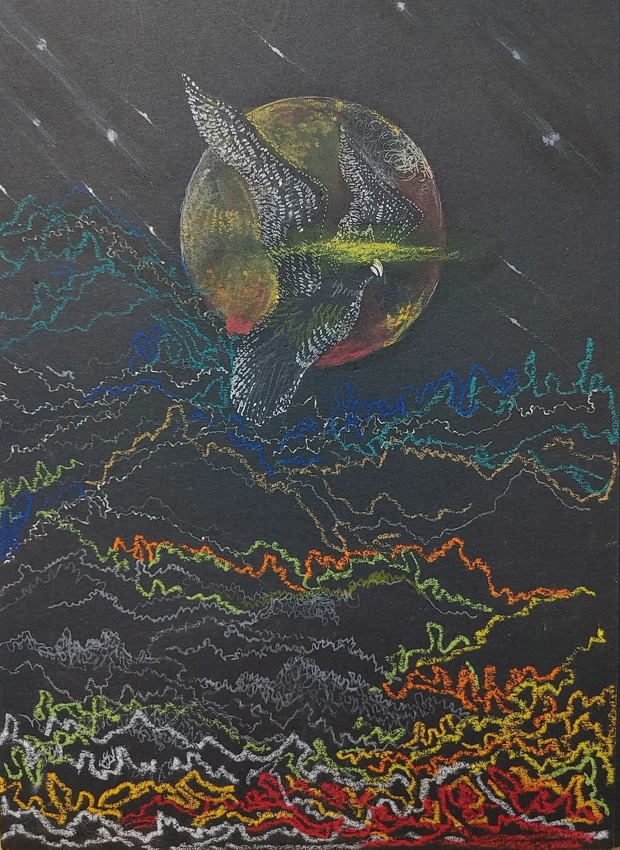 금빛 깃을 가진 새가 두 번 날갯짓을 한다