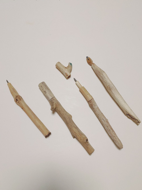 애증의 유목펜 2016~2024펜은 현재를 기점으로 사용의 기능을 점차 잃어가고 있는 도구이다. 인간이 사유하는 것을 문명의 기호는 가능하게 해 줬고 그것을 가시화시키는 동시에 기록적 형태를 드러낼 수 있도록 하였다. 수많은 소비물품 중에서도 온전한 구조적 공학적 기술이 펜에 녹아들어 가 있음에도 우리는 기록된 종이의 낱장보다 더 효과적으로 펜을 소비해 낸다. 나는 펜으로 만들어지는 2차적 부산물에 주목했다.