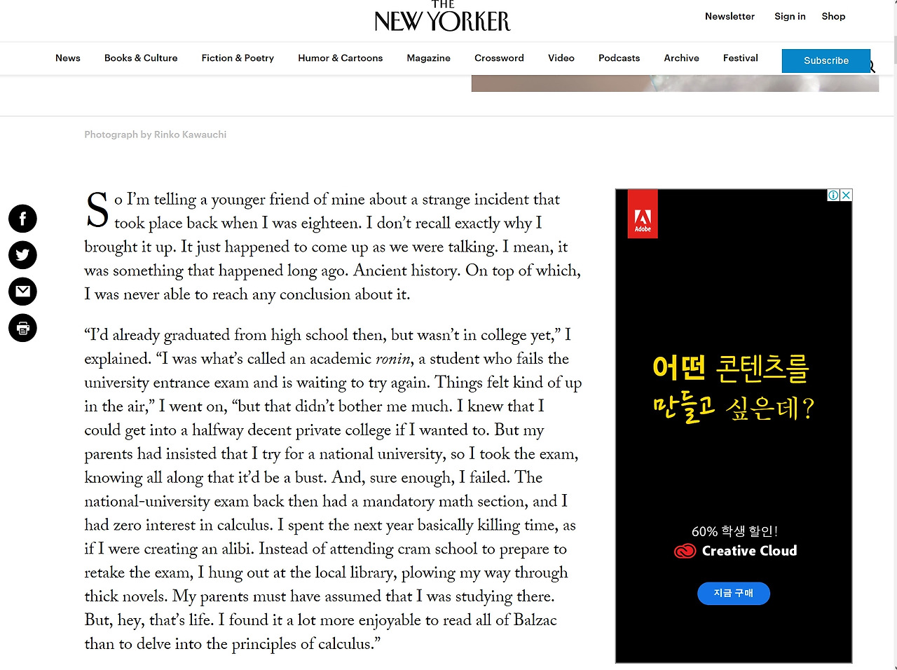 이 글은 무라카미 하루키의 신작(이라고 해야 할까) 단편 소설- 2018년에 나온 단편소설 ‘크림’이 2019년에 뉴요커 지를 통해 발표되었는데 도통 한국에 나올 기미가 보이지 않아서 의역을 해 본 것입니다. 지금쯤이면 한국에 단편 소설집이 나오고도 남았어야 하는 게 아닌가 싶은데,, 너무 성급한 생각인가.