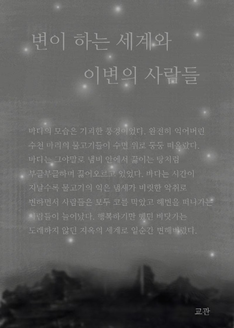 그녀는 모르는 것이 없었다. 표정을 떠올리니 사랑스러웠다. 마동은 한결 편해지는 기분을 느꼈다. 행복이었다. 마동은 행복하지는 않더라도 불행하지 않는 삶을 유지하는 것이 최선이라고 생각했다. 행복하게 되면 불행한 사람들에게 미안해하며 그 행복이 깨지는 순간이 두려웠다. 그럼에도 마동은 는개의 얼굴을 떠올리며 지금 이 순간 행복해하고 있었다. 마동은 잠들어 있던 자신의 모습이 어땠냐고 물어보려다 그만두었다. 마동은 는개와 몇 번의 문자를 주고받았다. 그녀와 문자를 주고받는 동안 자신의 얼굴이 미소로 번진다는 것을 느낄 수 있었다. 경찰이 전화국에서 자신과 는개가 주고받은 문자를 확인할지도 모른다는 생각이 들었다. 그녀는 그런 마동의 생각을 알고 있는지 문자를 한꺼번에 10개를 쏟아 보냈다. 점심을 뭘 먹을 것이냐, 오늘 회사의 정식은 양송이가 들어간 바다거북 수프에 건포도와 해마 튀김 그리고 크로커다일 스테이크가 나올 거라고 했다. 정말이야?라고 마동이 문자를 넣었고 ‘설마요’라는 는개의 문자가 왔다. 는개의 웃음소리가 들리는 듯했다. 만약 경찰이 문자를 전화국을 통해서 확인하다고 해도 그녀에게 피해가 가면 안 된다. 는개는 마동에게 나중에 봐요, 라며 문자를 끊었다.