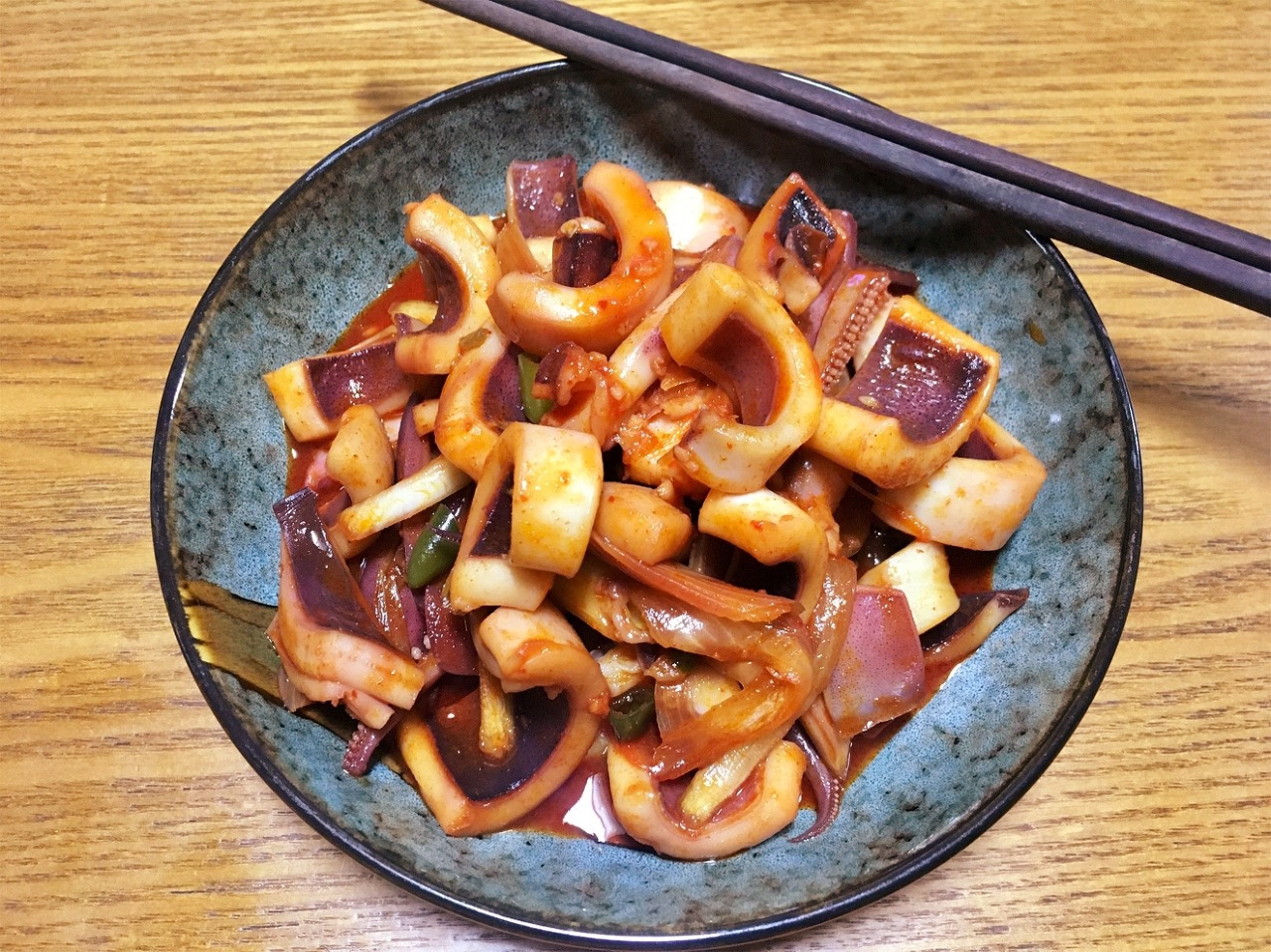오징어볶음이 도시락에 들어 있으면 젓가락들이 경공술을 하는지 눈에 보이지도 않을 속도로 휙휙 오고 간다. 그러고 나면 순식간에 도시락 바닥이 드러난다. 그래도 괜찮다 남은 오징어볶음과 양념장을 밥에 쓱쓱 비벼 먹으면 된다. 오징어볶음은 그만큼 맛있다. 오징어로 수많은 요리를 해 먹을 수 있다. 오징어는 회로도 일품이고, 오징어 탕도 너무나 맛있다. 오징어튀김은 말해 무엇 하리. 그래도 오징어볶음만큼 자주 해 먹을 수 있는 오징어 요리는 없다.