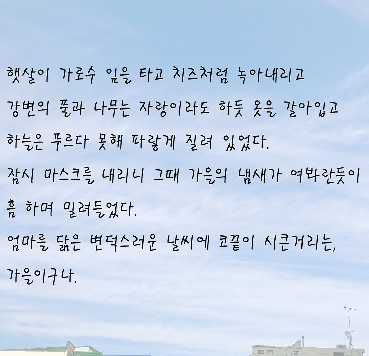 아직 불러보지 못한 이름과 하지 못한 말을 괜스레 하늘을 보며 말하고 싶은,