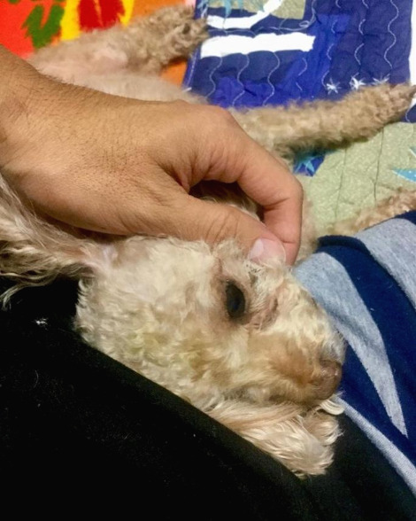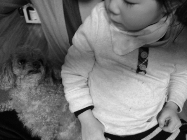 사진을 찍어 전단지를 만들어 동사무소와 근처 동물병원에 뿌리고 주인이 나타나기를 기다렸는데 3개월인가 4개월인가, 기다려도 주인이 나타나지 않아서 그냥 죽기 전까지 일 년이라도 키우자 해서 그냥 키우게 되었다. 그 뒤로 11년 정도를 살다가 얼마 전에 무지개다리를 건넜다. 이 녀석은 내가 집에 오면 그렇게 품에 파고들었다. 내가 앉으면 다리 위에 앉아버렸다. 조카가 어렸을 적에는 내 양반다리로 두 녀석이 서로 앉으려 했다.