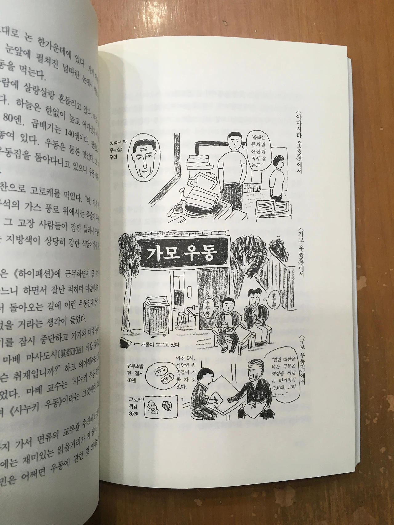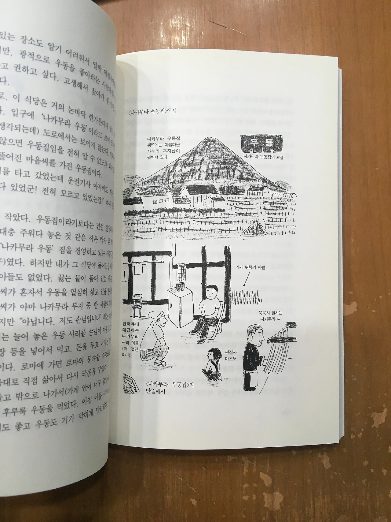 이 여행 에세이가 유별난 이유가 몇 개 있는데 그중 하나는 긴박한 상황 속에서도 하루키 만의 유머를 잃지 않고 있지만 또 몰래 찍은 사진도 실려 있는데, 책장을 넘기다 보면 얼씨구 반가운 안자이 미즈마루 씨의 삽화도 함께 실려 있다.