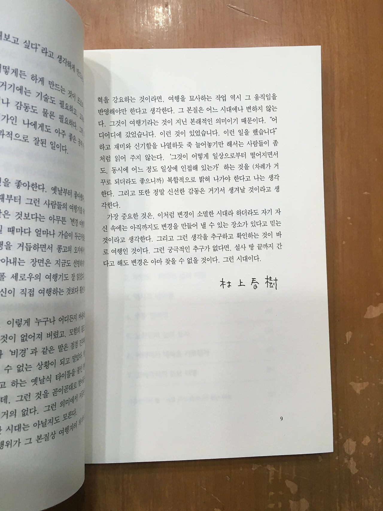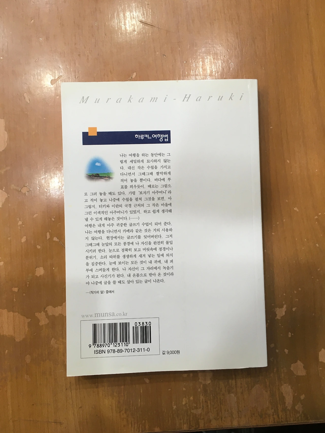 그런데 이 촌스러운 디자인 덕분에 ‘하루키의 여행법’이 유명하게 되었다. 하나의 세계를 만들어냈다. 그래서 기념으로는 그만인 하루키의 책이다.