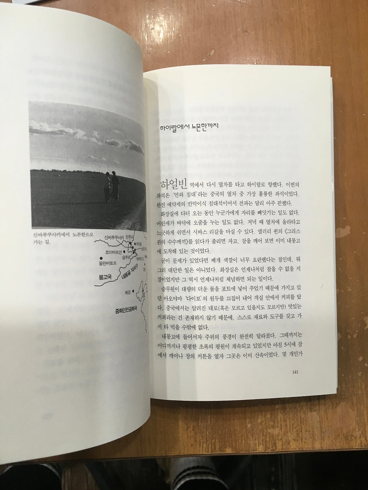 그러니까 이 책은 짬짜면에 탕수육까지 있는 세트메뉴 같은 느낌이다. 노몬한 여행길은 '태엽 감는 새'의 노몬한과 만주 이야기를 보고 잡지사에서 실제로 가보지 않겠냐, 해서 여행길에 오르게 되었다. 이 부분은 또 다른 ㅇㅅㅇ ‘우천 염전’에도 나오는 걸로 아는데 기억이 가물가물하다.