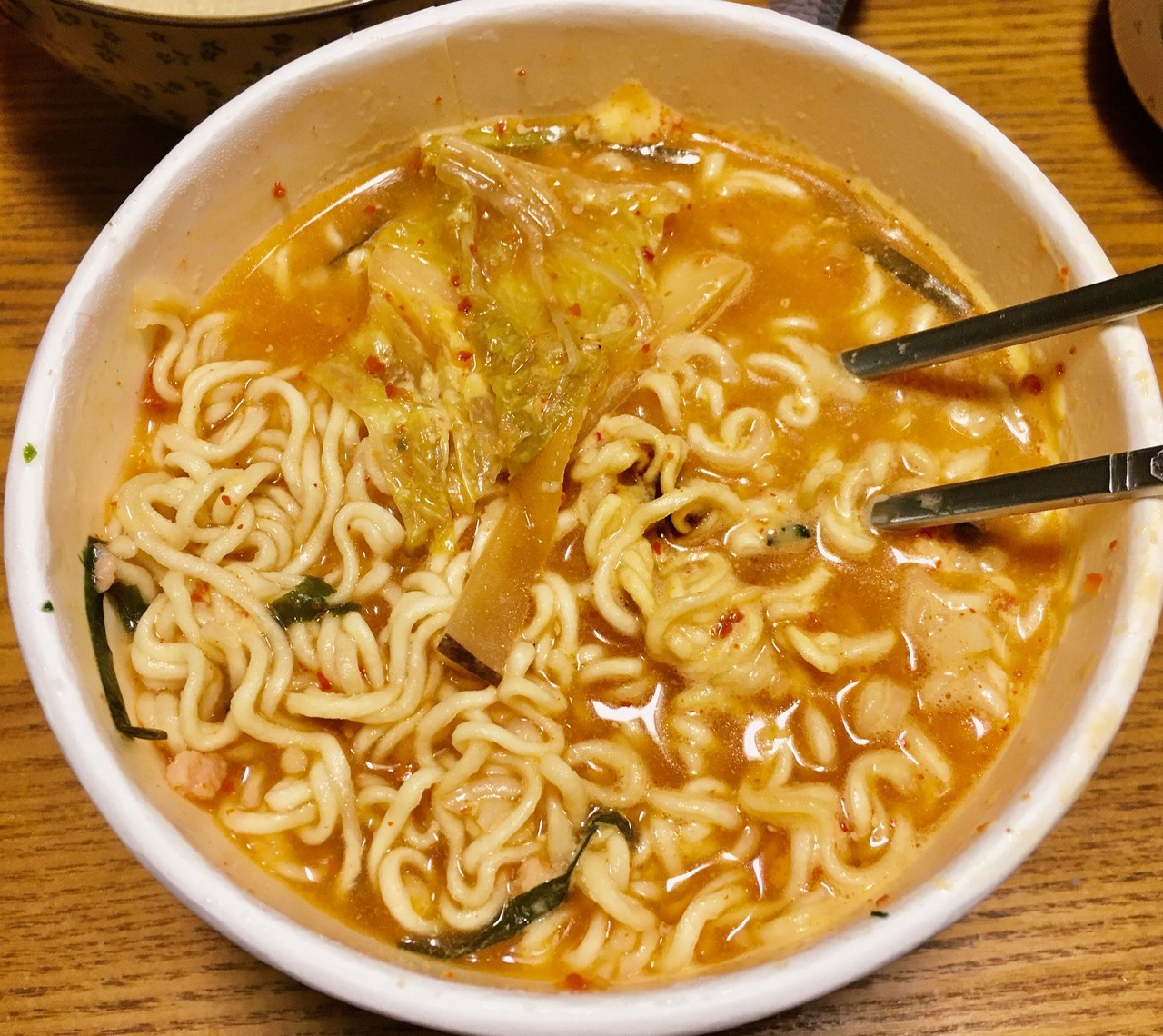 컵라면은 간단하게 먹는 음식의 대명사인데 나는 컵라면을 편의점보다 집에서 더 많이 먹는다. 편의점은 좀 이상한 곳이라 분명 컵라면을 먹으러 들어갔지만 눈에 들어오는 오만가지 맛있는 것들이 유혹을 하는 바람에. 집에는 늘 컵라면이 몇 개 있고 집에서 컵라면을 먹을 때가 더 많다. 컵라면에 계란을 하나 탁 깨트려 넣으면 흰자가 다 익지 않고 이렇게 약간은 덜 익어서 계란의 비릿한 맛이라고 해야 할까, 그런 맛이 나는데 그게 맛있다.