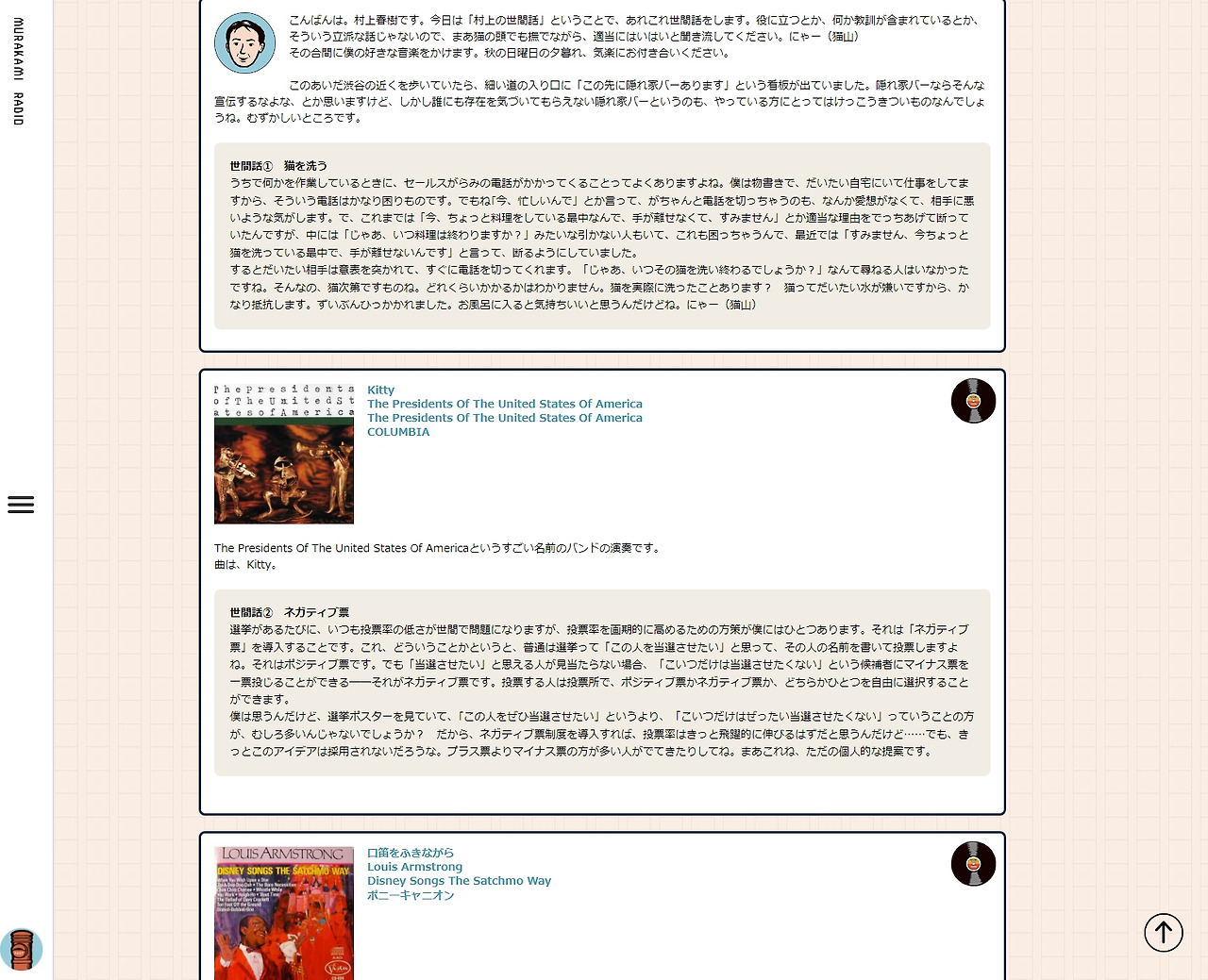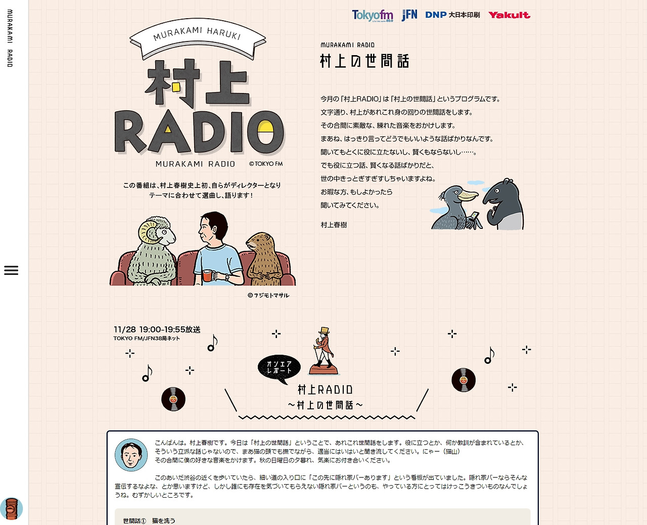 하루키가 라디오 방송을 직접 하면서 두 달에 한 번씩 하던 라디오 방송을 한 달에 한 번씩, 애정을 가지고 하면서 소소한 자신의 이야기, 주변의 이야기를 했다. 출처는 파인딩 하루키 사이트입니다.