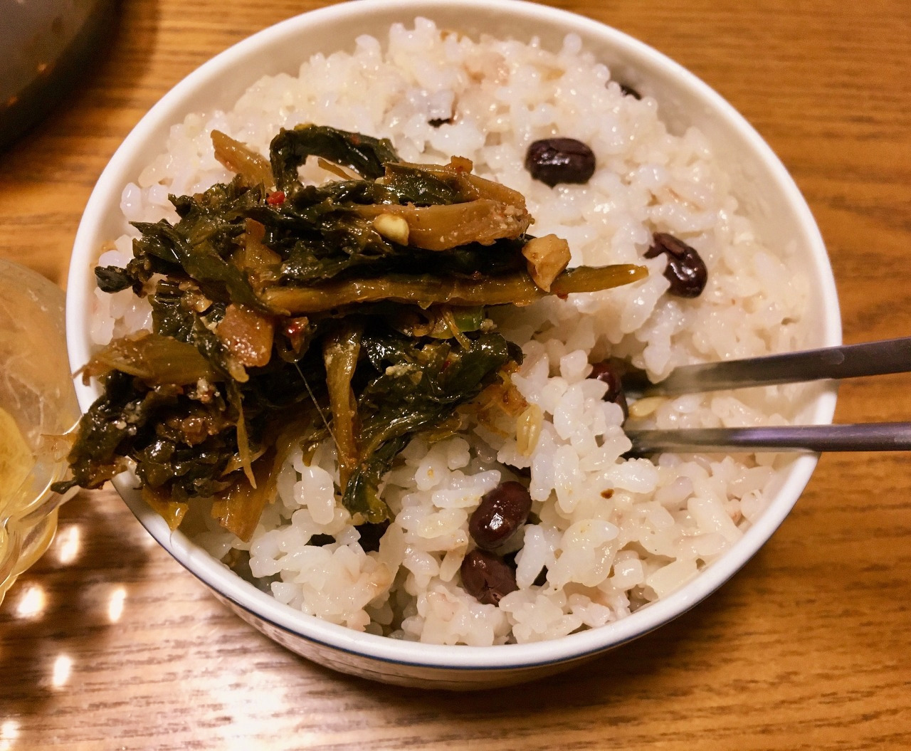 시래기 무침의 이 끈적함이 좋다. 밥과 함께 젓가락으로 떠서 그대로 입에 넣어서 먹는, 그런 맛이 있다. 다른 무엇도 필요 없고 시래기 무침과 밥의 조화가 좋은 것이다. 그러다가 밥이 반쯤 남았을 때 시래기 무침을 넣어서 들기름을 몇 방울 떨어트려 비벼서 먹는다.