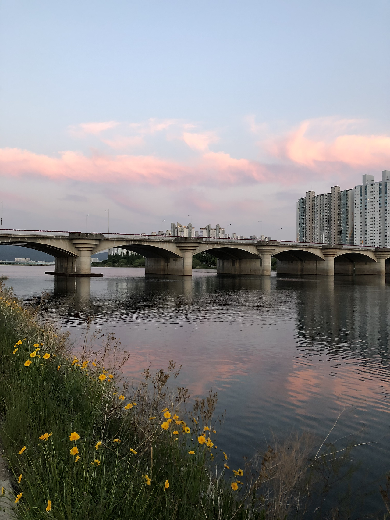 매일 비슷한 곳을 조깅을 하면서 눈에 들어오는 풍경을 사진으로 남기면서 든 생각은 같은 날이 단 하루도 없다는 것이다. 자연은 이렇게 매일 다른 그림을 그려 놓는다. 색감도 매일 다르다, 때론 강렬하게 때론 부드럽게 하늘과 강에 수놓는다.