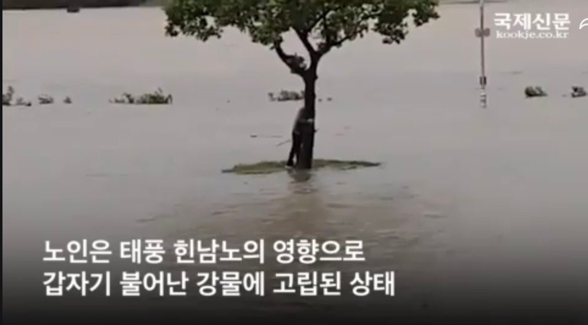 처음에는 말을 걸어 보았으나 전혀 대꾸가 없어서 말을 하지 못하는 줄 알았다. 그리고 저녁밥을 챙겨주는 다른 할아버지가 가족인 줄 알았는데 그것도 아닌 것 같았다. 기사를 접하고 사람들은 집에서 왜 나왔냐고 하는데 집도 없는 것 같고, 할아버지는 강변의 늘 저 자리에 앉아 있다가 문명과 동떨어져 있어서 태풍이 오는 것도 모른 채 불어난 강물에 나무에 매달려 있다가 구조가 되었지 싶다.