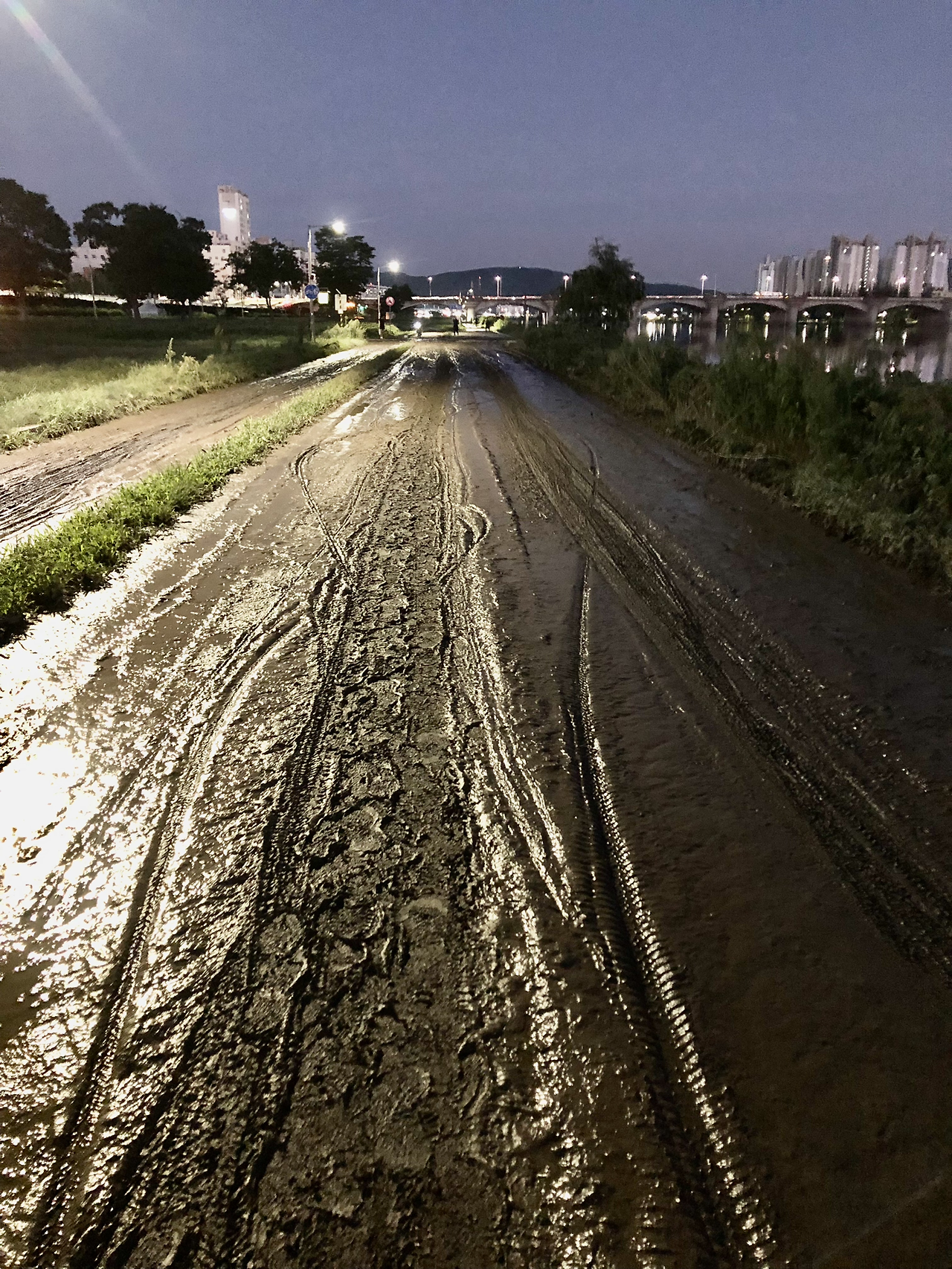 작년, 재작년, 그 이전에는 못 보던 할아버지다. 올해 봄이 지나서부터 보게 되었다. 나는 거의 매일 일정한 시간에 조깅을 하러 강변에 나가다 보니 할아버지를 보게 되었는데 봄이 지난 후부터 매일 저녁에는 저렇게 저 자리에 앉아서 어딘가 한 곳을 응시하고 있다. 태풍이 오기 직전까지 아마도 여기에서 그대로 누워서 잠이 들었다가 아침이 되면 일어나거나 할지도 모른다.