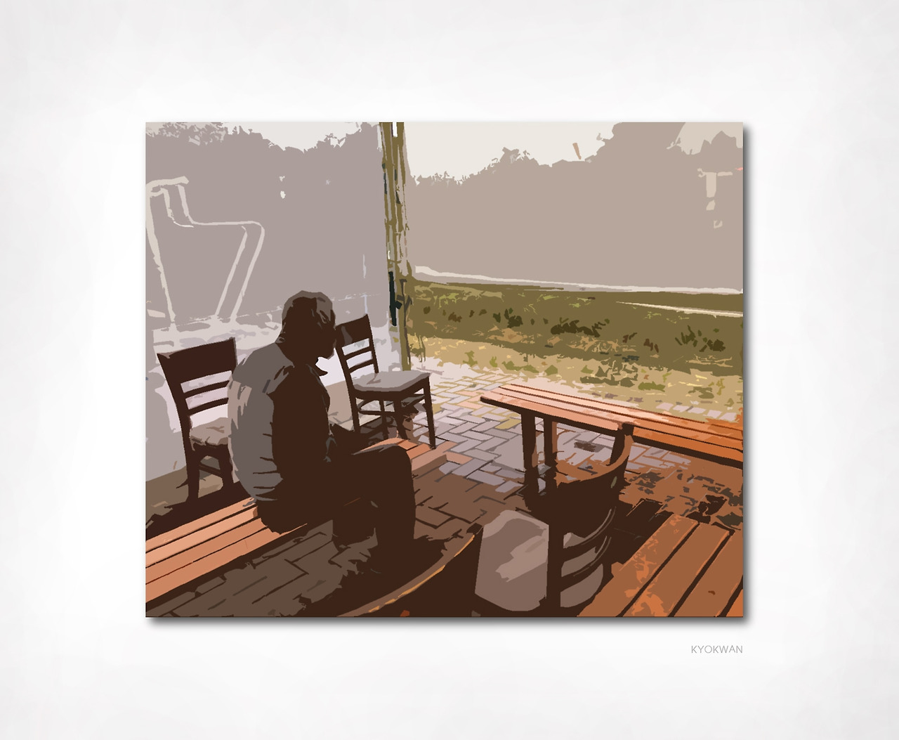 나의 아버지는 노인이 되기 전에 세상을 등졌다. 나에게 굽은 등을 보이기 싫어서였을까. 저 노인도 굽은 등을 자식들에게 보이기 싫어서 이렇게 비가 내리는 날에도 이런 곳까지 나와서 굽은 등으로 멍하게 한 곳을 바라보는 것일까. 노인의 굽은 등을 보니 ‘아버지와 이토 씨’에서 집이 홀라당 타 버리고 딸의 집에서 굽은 등으로 멍하게 화단을 바라보는 노인이 된 아버지의 모습이 떠올랐다. 타인은 다가갈 수 있지만 자식은 다가갈 수 없는 등이 노인의 굽은 등이다. 그런 등에는 노인의 세계가 있다.