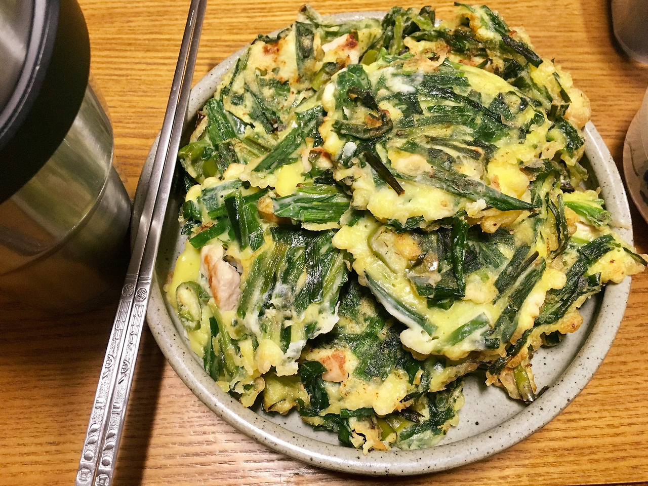 주인집과 우리 집은 마당에서 부추전을 그렇게 자주 만들어 먹었다. 부추는 넘치고 밀가루를 버무려 마당에서 지글지글 부추전을 구우면 두 집만의 파티였다. 그 냄새가 골목으로 퍼지면 다닥다닥 붙어있던 옆 집, 뒷 집에서도 와서 같이 부추전을 나누어 먹었다. 혼자인 게 편하고 혼자서 뭘 먹는 것이 좋지만 부추전은 다 같이 둘러앉아 죽죽 찢어 먹었던 맛이 있었다. 그래서 지금도 부추전을 자주 해 먹는지도 모르겠다.