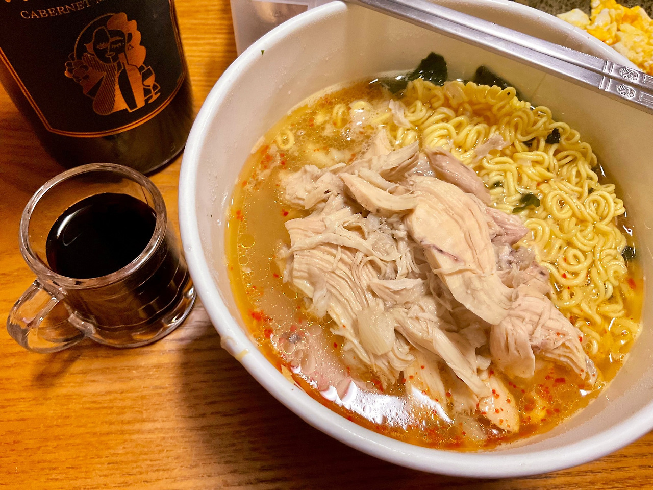 찜통의 닭 육수는 금방 바닥이 드러난다. 맛있게 컵라면을 먹을 수 있지만 찜통을 깨끗하게 씻어야 하는 후처리는 힘이 들지만 내가 해야 했다. 그게 몹시 귀찮았다. 집에서 닭 한 마리를 마늘을 엄청 때려 넣고 끓이면 맛있는 육수가 나온다. 팔팔 끓여서 컵라면에 부어서 먹으면 맛있다. 닭은 죽죽 찢어서 같이 넣어서 먹는다. 이렇게 하면 아이들도, 외국인도, 어른도 맛있게 먹는다. 맛있게 많이 먹으면 모다? 살은 찐다.