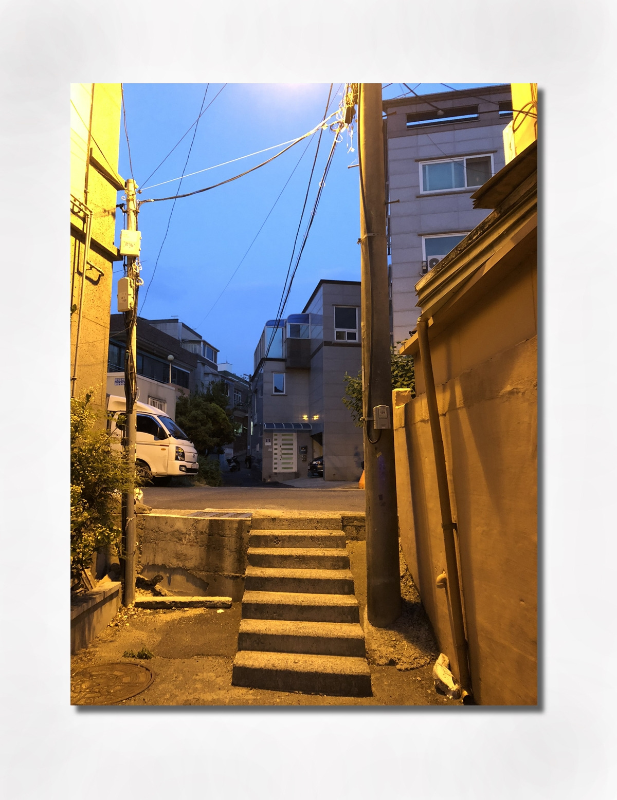 평소에 다니지 않던 곳을 지나서 오다가 골목을 발견했다. 골목은 언제나 사진 메이트다. 골목만큼 사진으로 담기에 좋은 이야깃거리가 없다. 골목과 가로등, 그리고 골목 속의 계단만으로도 괴담이나 추억이 와르르 쏟아질 것만 같다.