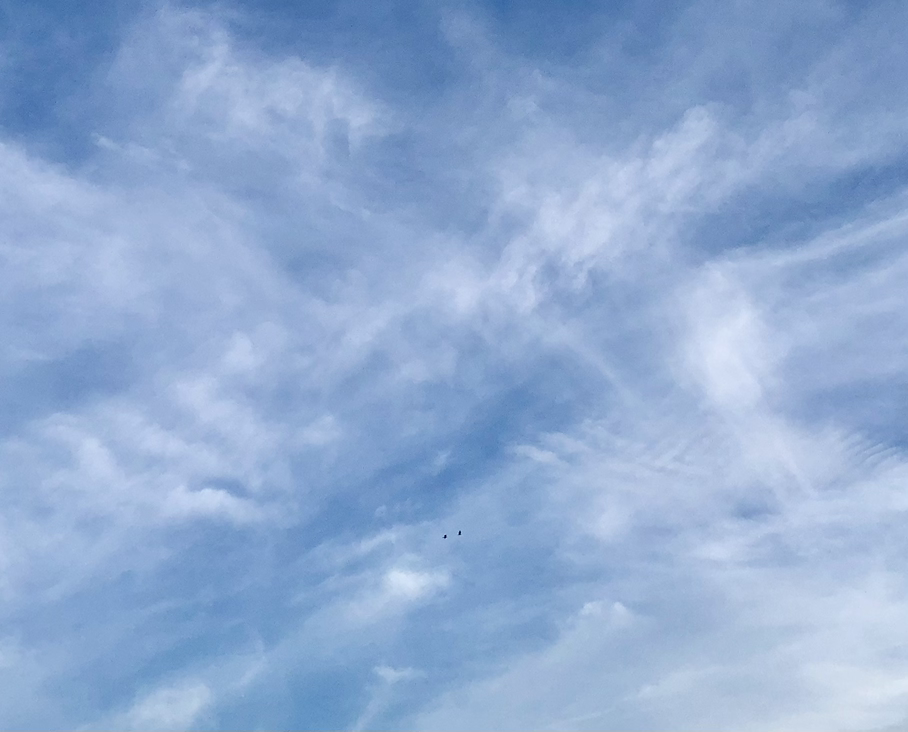 하늘 속에 새 한 쌍이 이 넓은 하늘을 전세 내서 사랑 비행을 하고 있기에 한 컷 담았다. 두 마리는 사이가 좁혀졌다가 다시 조금 벌어지고를 반복했다. 그들의 사랑법인 것 같다. 저 새들보다 더 큰 새도 보이지 않고 저들을 방해하는 방해물은 적어도 하늘에는 없었다. 그저 활공을 하며 사랑을 나누는 것이 저들이 해야 할 오직 하나인 것처럼.
