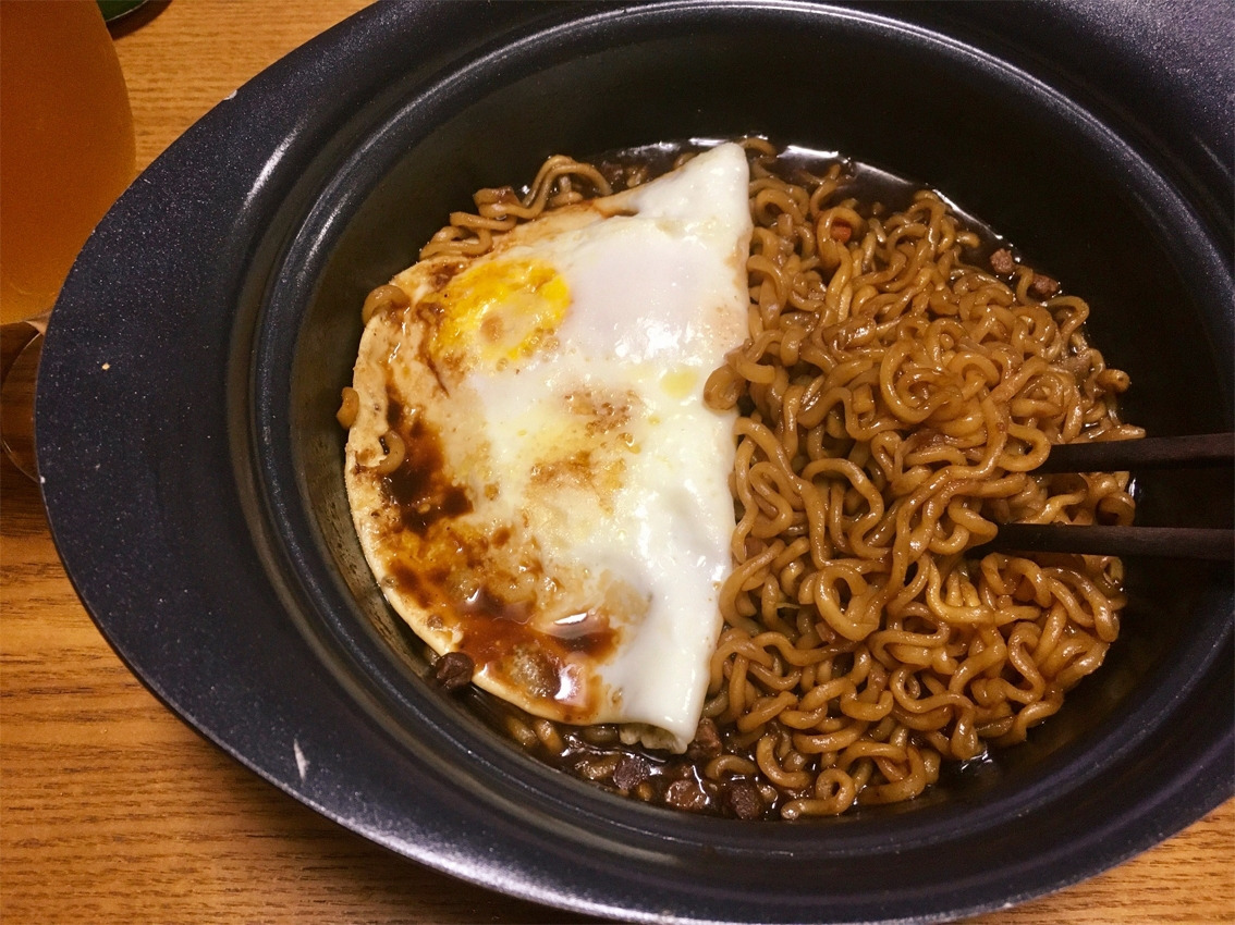 학창 시절에 토요일에 일찍 마치면 집으로 달려와 끓여 먹는 짜파게티는 정말 맛있었다. 짜파게티도 먹다 보면 스킬이 늘어난다. 집된장을 조금 넣어서 같이 끓이면 묘하게도 중국집 짜장면과 맛이 비슷하다. 나는 위가 좋지 않아서 짜파게티는 라면보다 소화를 잘 못 시킨다. 그래서 물을 다 버리지 않고 반쯤 버리고 아주 팔팔 조리듯이 끓인 다음에 아주 천천히 먹는다. 3개를 끓여서 집구석에서 좋아하는 영화를 보며 거의 영화 한 편이 끝날 때까지 먹는다. 천천히 먹다 보면 식지만, 짜파게티는 그렇게 먹어도 맛있다.