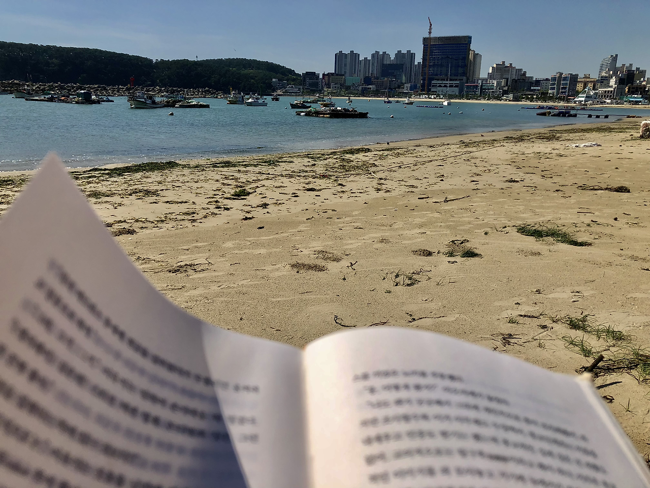 태풍이 몰고 간 후, 며칠이 지난 바닷가 역시 하늘과 바다가 아주 깨끗했다. 해변은 아직 태풍의 영향으로 모래가 덜 말랐지만 바다와 하늘은 깨끗했다. 해도 떠서 뜨거움을 뿜어냈다. 아직은 여름의 열기가 남아있는 날이었다. 이른 아침에 나와서 햇빛을 받으며 책을 좀 읽었다. 이렇게 앉아서 읽는 책이 개인적으로는 가장 잘 읽힌다.
