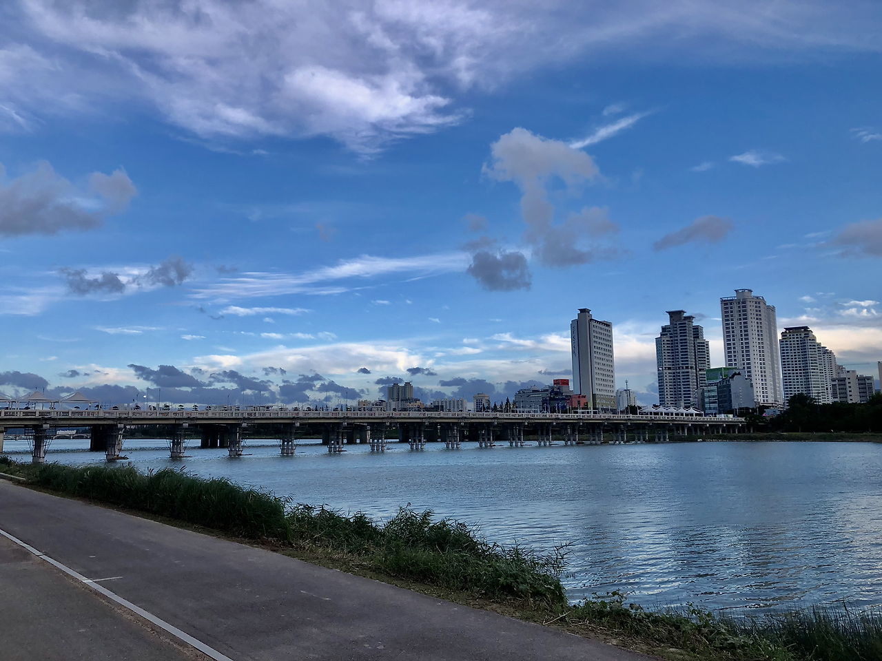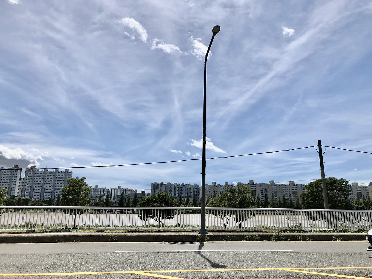 강변의 흙구덩이가 있는 곳은 아직 진흙과 냄새가 났지만 하늘이 여름의 하늘이 아니었다. 구름은 늘 다른 형태를 띠고, 인간의 마음과 비슷한 이데아를 지니고 있다. 조깅을 하러 나와서 그런 구름을 보는 재미도 좋다. 하늘과 구름은 3D처럼 아주 입체적이다. 어떻게 이렇게 매일 다를까. 그건 어떻게 생각을 해도 신기하기만 하다.