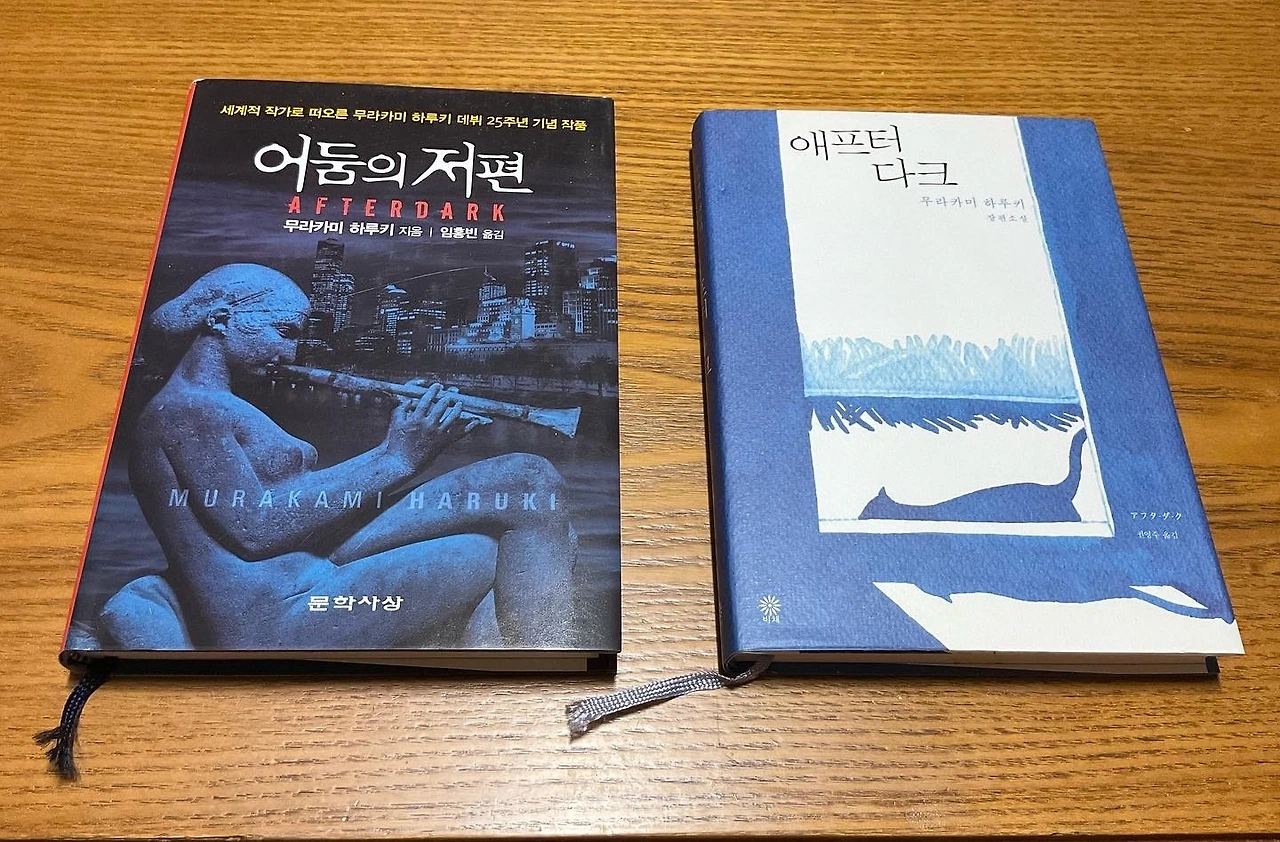 어둠의 저편과 애프터 다크는 같은 소설이며 다른 출판사의 다른 번역가의 번역본이다. 같은 소설이지만 제목도 언뜻 다르고, 표지도 다르며, 출판 연도도 다르고 첫 페이지 첫 문장 번역도 다르다.