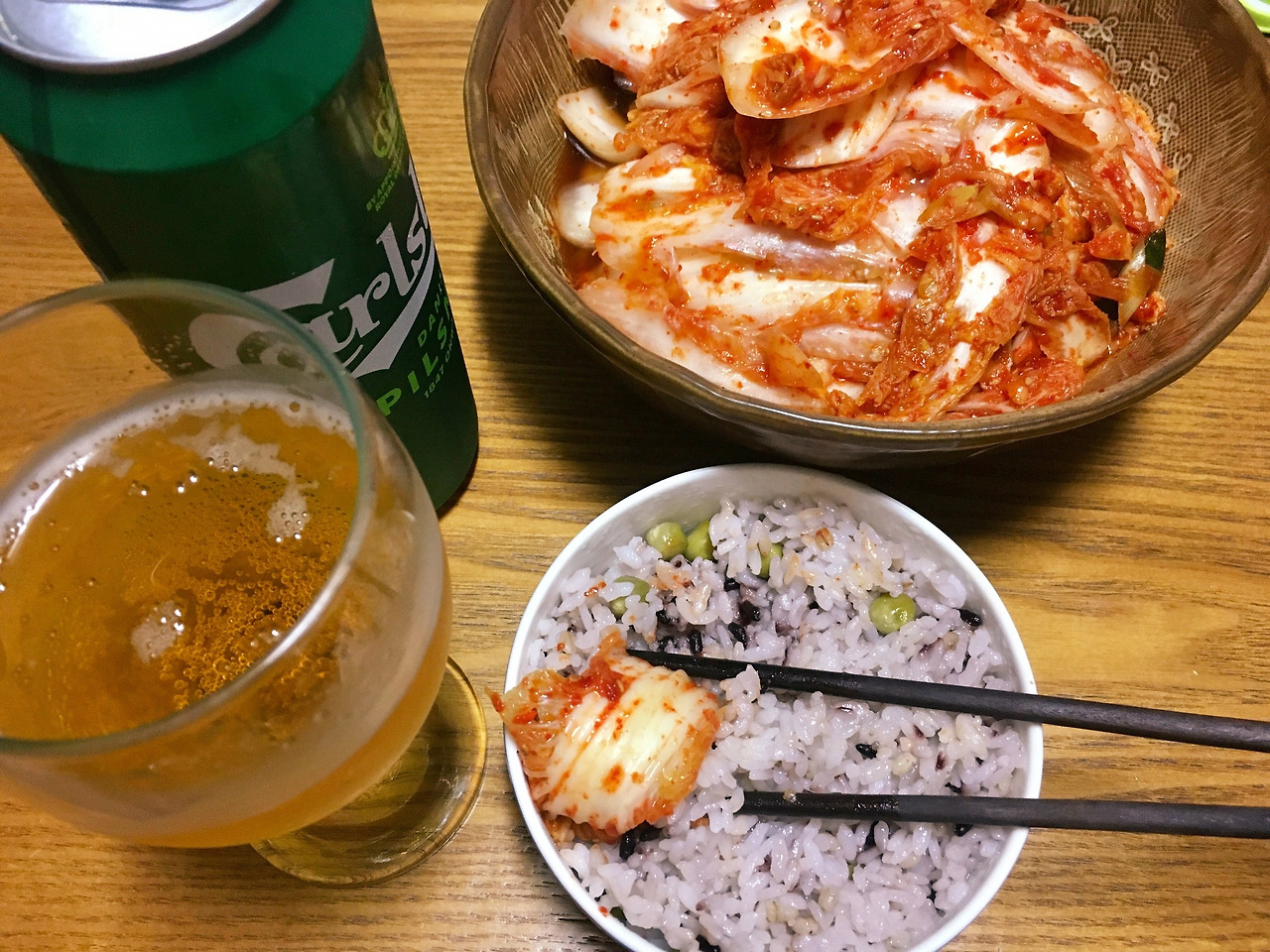 이런 맛은 김치를 갓 담갔을 때만 가능한 맛이다. 여기에 끼어들 수 있는 건 맥주뿐이다. 그 외에는 어떤 것도 서번트로 낄 수 없다. 식사를 할 때 반드시 자리에 앉아서 먹도록 우리는 배웠다. 그런데 나는 위에서 말한 대로 특이하게도 식탁에 밥과 김치만 꺼내 놓고 일어서서 김치를 밥에 말아서 후딱 먹는 걸 좋아한다. 일어나서 빠르게 먹으면 뭐가 어떻니 같은 말을 듣지만 사실 그렇지 않다. 앉아서 먹을 때보다 일어나서 먹는 게 위에 훨씬 덜 부담이지 않을까 싶다.